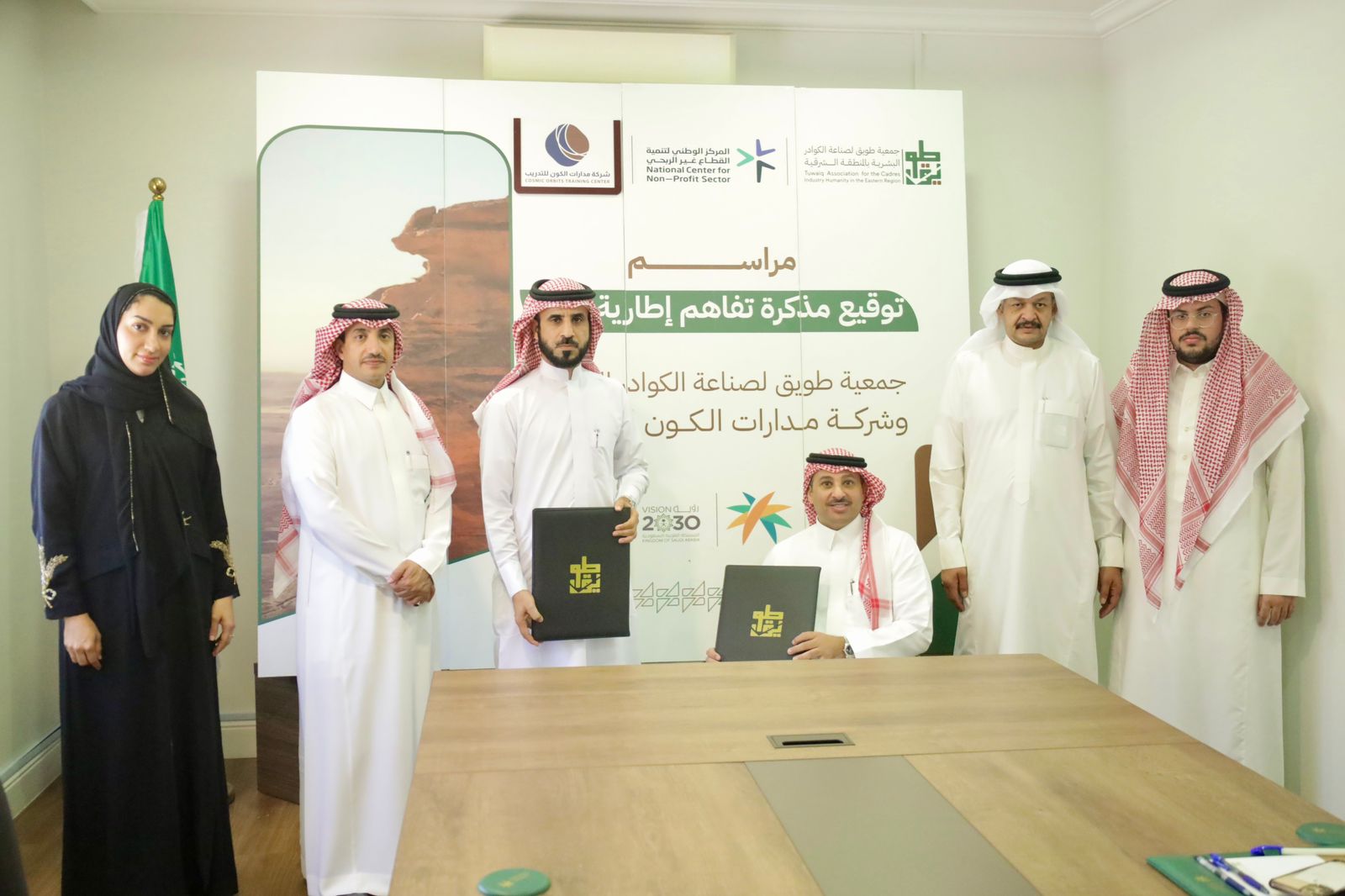 وقعت جمعية "طويق" للموارد البشرية بالمنطقة الشرقية مذكرة تفاهم إطارية مع شركة مدارات الكون للتدريب وذلك لتدريب 1000 متدرب من أبناء وبنات الوطن ، بهدف تمكينهم وتنمية قدراتهم البشرية إضافة إلى ضخ الكوادر الوطنية المؤهلة لسوق العمل تواكبا مع رؤية المملكة 2030 بما يساهم في دعم عجلة التنمية ورفع نســبة الاقتصاد في المخزون البشري ، وقد مثل الجمعية في الإتفاقية رئيس مجلس الإدارة خالد العبيد وعن الشركة الرئيس التنفيذي نايف الهاجري .
