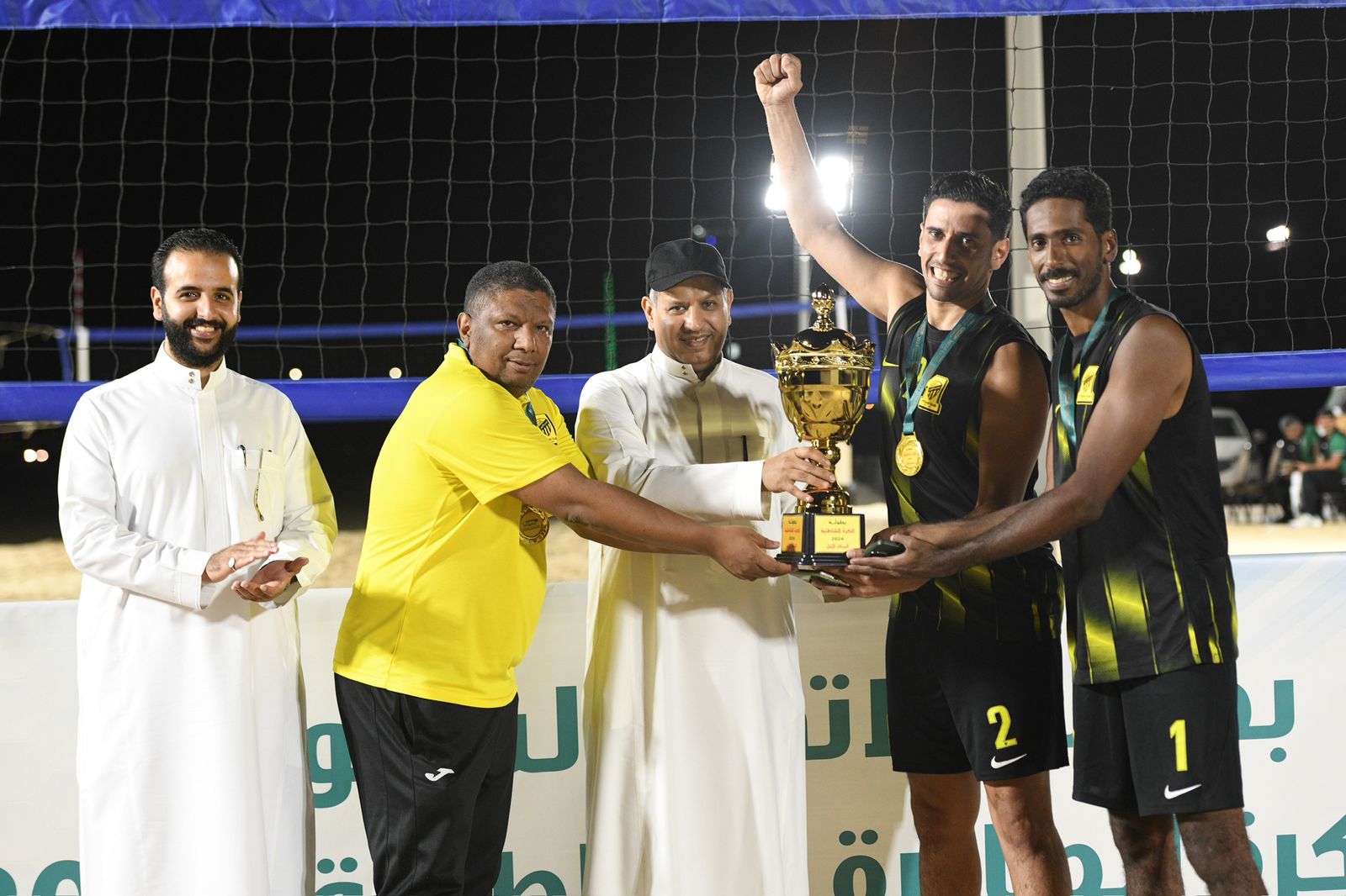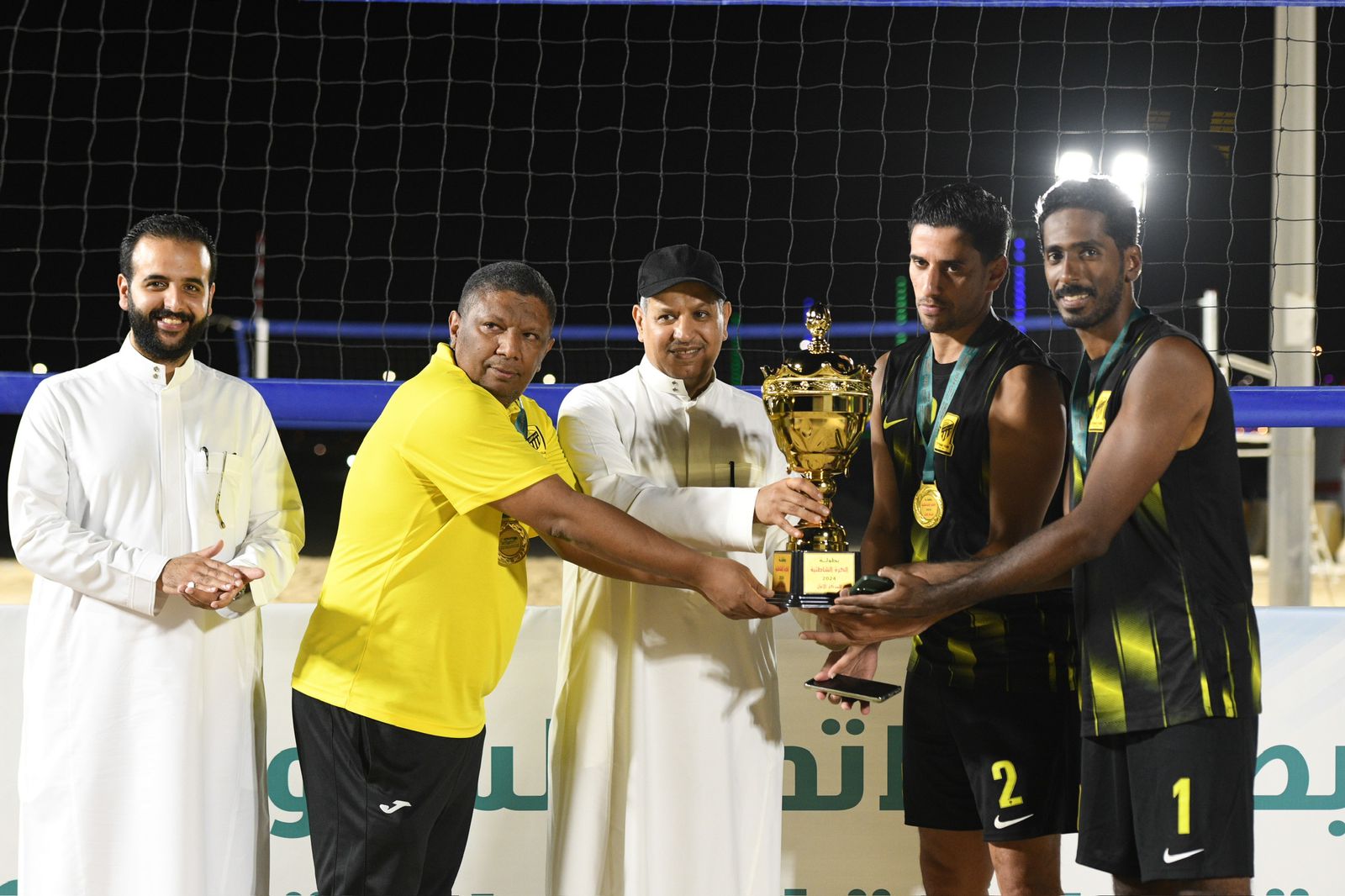 توج نائب رئيس الاتحاد السعودي للكرة الطائرة، سعد الرويس، فريق الاتحاد بكاس بطولة المملكة للكرة الطائرة الشاطئية والميداليات الذهبية بالثنائي زيد باصهيب وسعد العلياني.