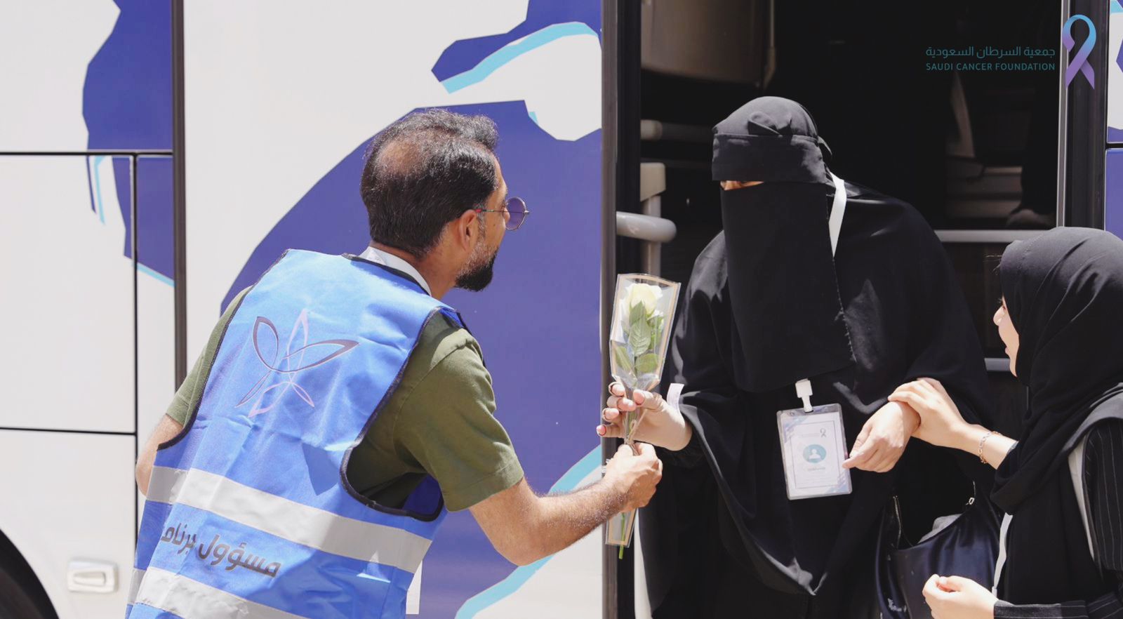 كما وفرت الجمعية حافلات نموذجية مريحة إضافة لأركان ضيافة ومسابقات وجوائز طوال فترة الرحلة لإدخال السرور والبهجة على قلوب مرضى السرطان.