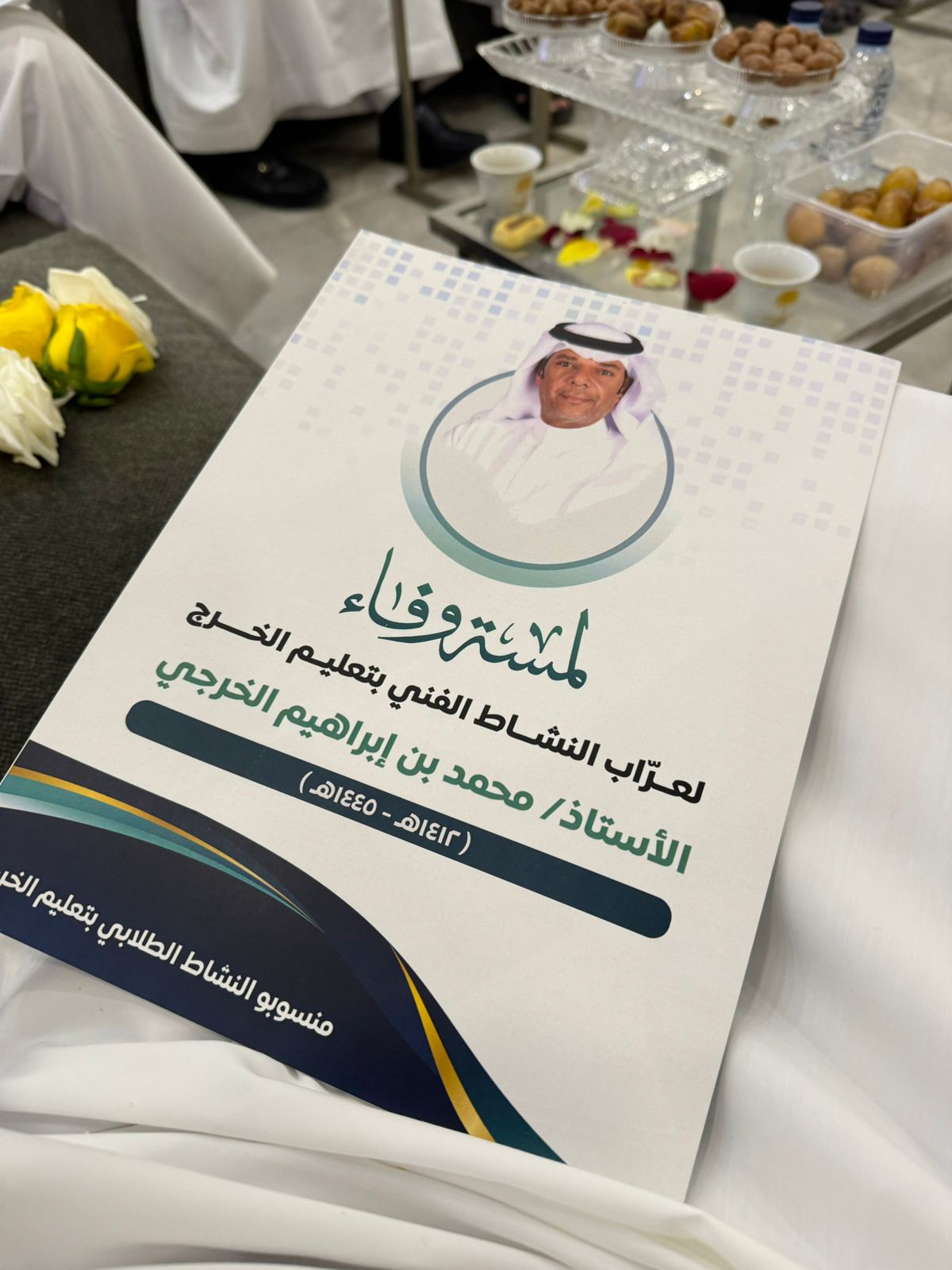 ويأتي هذا التكريم لمسة وتجسيد لمسيرته التعليمة والتربوية من قسم النشاط بإدارة التعليم بمحافظة الخرج.