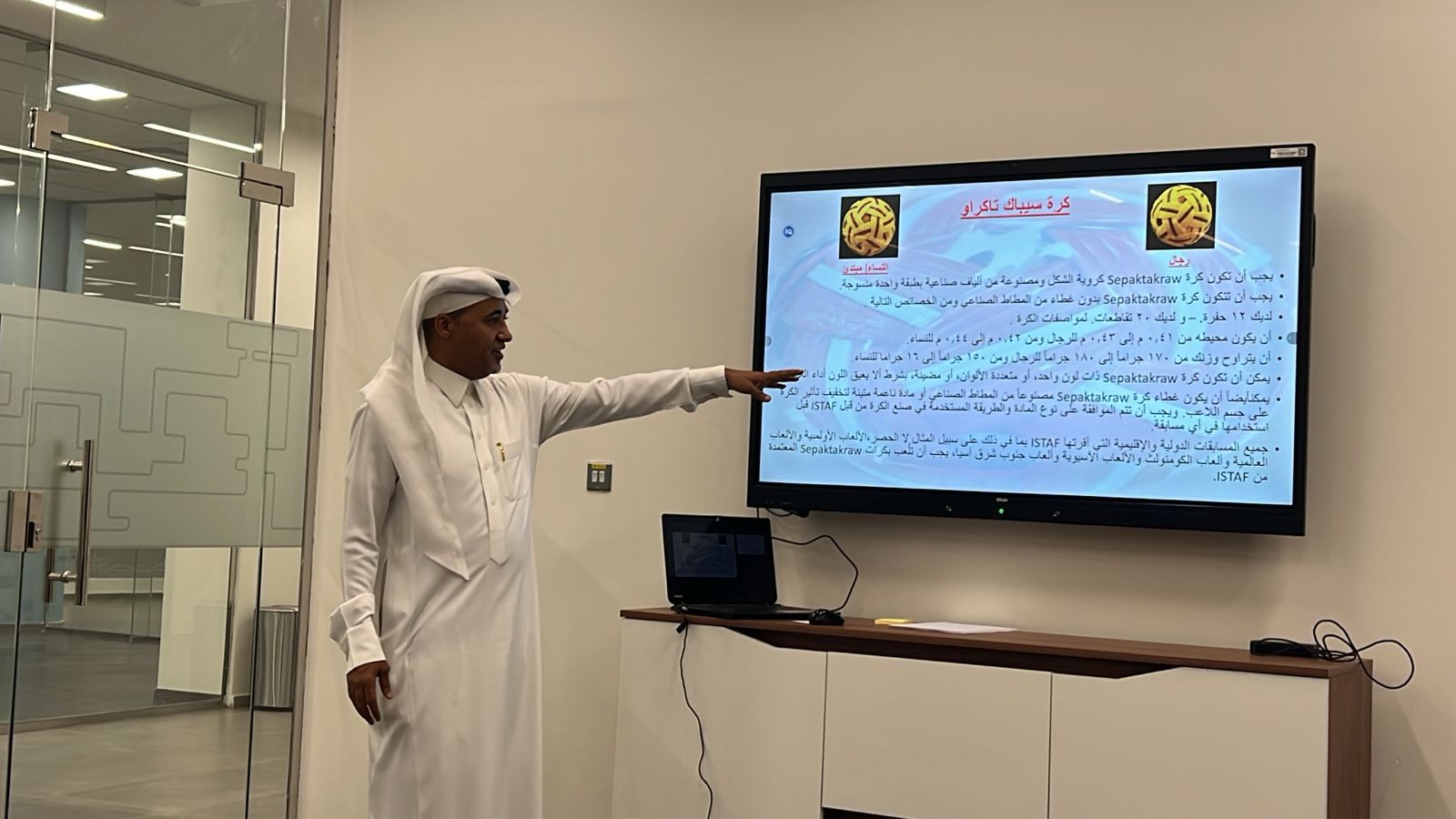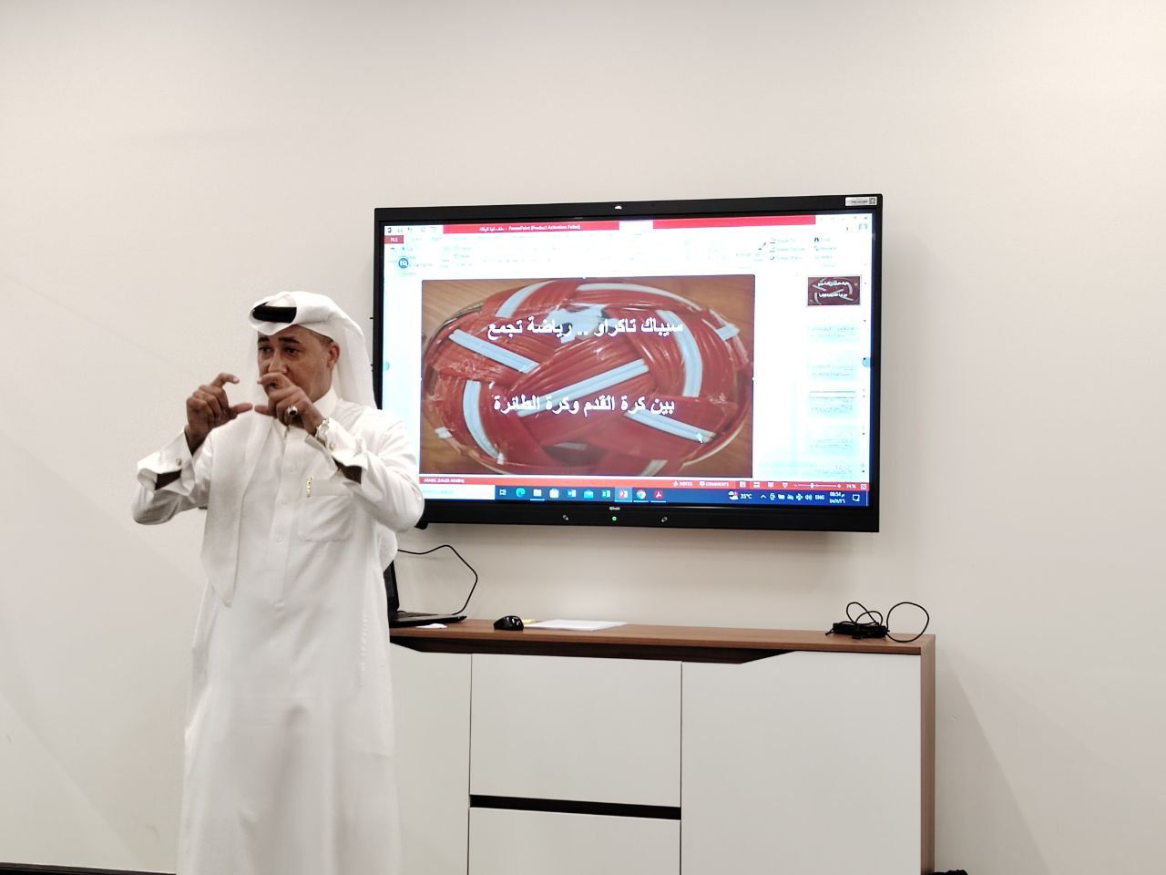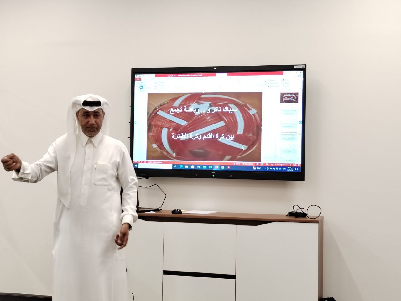 بحضور عدد من المدربين والمدربات وحكام لعبة كورة الركلة والاعلاميين قدم المدير الرياضي بنادي الدمام السعودي والمدرب الوطني لكرة الركلة الكابتن عصام الخميّس، شرح مفصل بالصوت والصورة عن الأسلوب والقانون الدولي للعبة كورة الركلة والتعليمات التي تخص هذه اللعبة المنتشرة في أكثر من 65 دولة على مستوى العالم وذلك في الاجتماع الذي أقيم مساء يوم أمس الاثنين ٢٦-١١-١٤٤٥هـ الموافق ٣-٦-٢٠٢٤م " كمبادرة " في مقر بيت الثقافة والمكتبة العامة بالدمام .