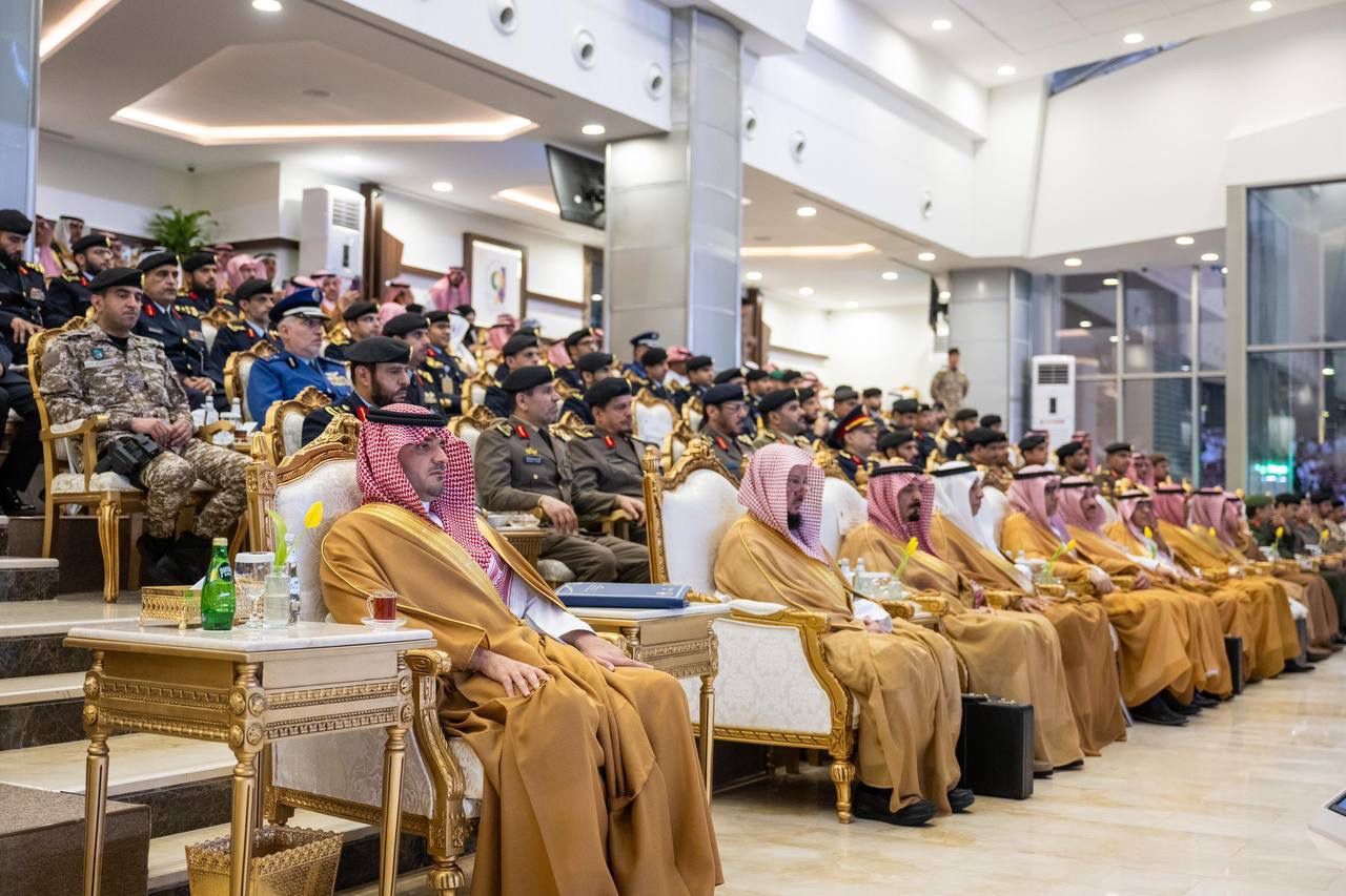 وبعد أداء القسم، شهد سموه مراسم تسليم راية الكلية، وإعلان النتيجة العامة، و كرم سمو الأمير عبدالعزيز بن سعود أوائل الخريجين، ودشن برنامج ماجستير القيادة الإدارية.