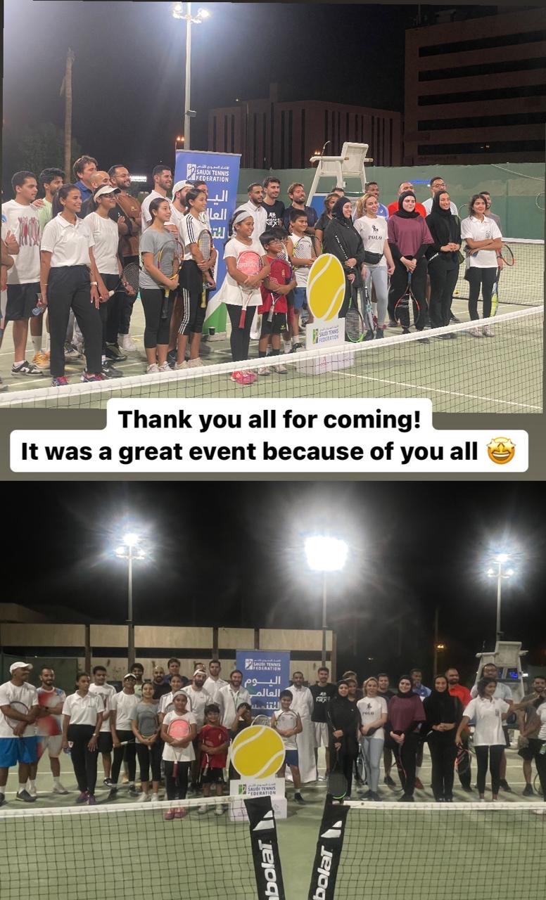 نظم مجتمع التنس بالرياض فعاليات متعددة تزامن مع اليوم العالمي للتنس بحضور مساعد المدير التنفيذي الأستاذ عبدالعزيز غاصب، وشارك فيها مجتمع التنس بالرياض وأشرف على التنظيم الأستاذة ساره القحطاني، وفي الشأن التدريبي الكوادر الفنية، حسن العروسي المدير الفني للإتحاد،عبد القادر مداني، بابلو موسكيرا، ومصطفي الأغا، حيث كشفوا أهداف مجتمع التنس والمتمثلة ببناء روابط قويه بين أفراد المجتمع من خلال هذه اللعبة وتوفير فرص للتفاعل الاجتماعي والتعاون والتدريب والتطوير المستمر عبر الفعاليات المجتمعيه التي تعد متاحة للجميع بتكاليف ميسورة ومريحه للجميع