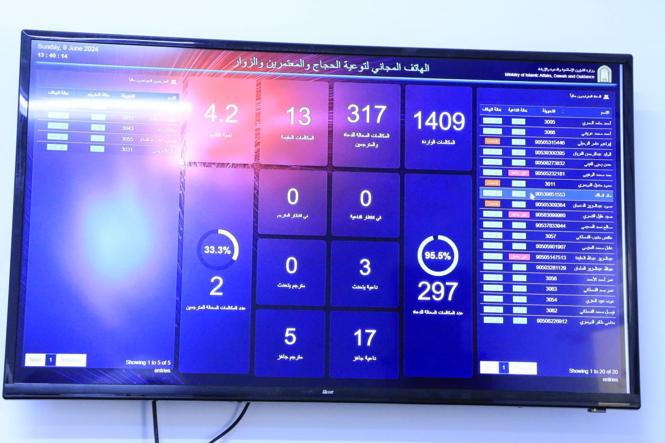 استقبلت وزارة الشؤون الإسلامية والدعوة والإرشاد ممثلة بالأمانة العامة للتوعية الإسلامية في الحج والعمرة والزيارة أكثر (113 ألف) مكالمة عبر الهاتف المجاني منذ بداية موسم الحج حتى اليوم الرابع من ذي الحجة لعام 1445هـ, للرد على استفسارات وأسئلة ضيوف الرحمن الذين قدموا لأداء مناسك الحج, ويأتي ذلك في إطار الجهود المتواصلة التي تقدمها الوزارة والمنبثقة من رسالة المملكة السامية في نشر الوسطية والاعتدال وتوجيه ضيوف الرحمن وفق المنهج الصحيح الذي جاء به الكتاب والسنة المطهرة تحقيقًا لتطلعات ورؤى القيادة الرشيدة.