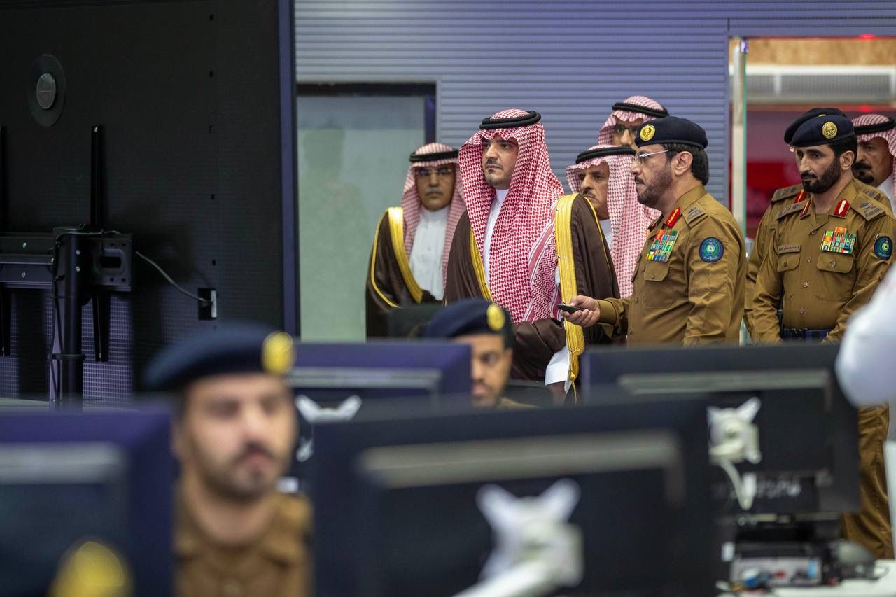 تابع صاحب السمو الملكي الأمير عبدالعزيز بن سعود بن نايف بن عبدالعزيز وزير الداخلية رئيس لجنة الحج العليا، اليوم، سير العمل في مركز القيادة والتحكم التابع للدفاع المدني بمشعر منى.