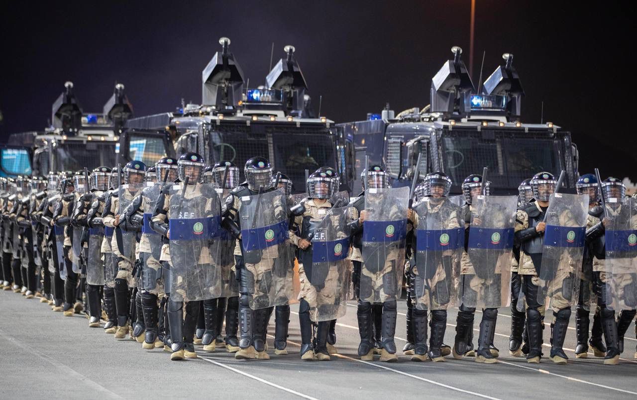 واستعرضت قوات أمن الحج جاهزيتها من خلال تنفيذ عدد من الفرضيات الأمنية التي أظهرت مستوى القدرة والإتقان التي تتميز بها القوات، كما تم استعراض أبرز الآليات والمدرعات والمركبات الخاصة، وطيران الأمن.