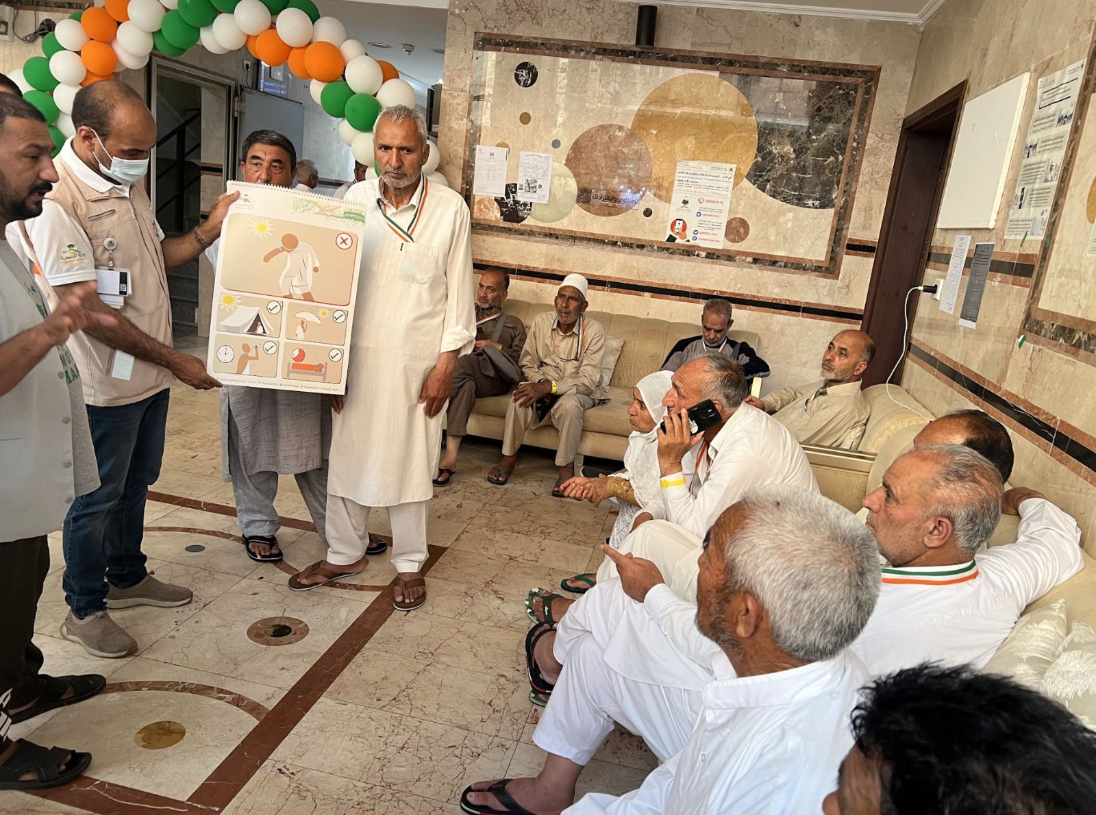 ضمن جهود وزارة الصحة وبالتعاون مع إمارة منطقة مكة المكرمة ووزارة الحج والعمرة، فعلت مديرية الشئون الصحية بمنطقة مكة المكرمة برنامج سفراء التوعية والتثقيف الصحي لاستهداف مساكن الحجاج بالعاصمة المقدسة بهدف رفع الوعي الصحي تجاه مخاطر الإجهاد الحراري وتفادي ضربات الشمس مع توزيع حقائب صحية تشتمل على مظلات شمسية وقطاره ومعقم وبروشور تثقيفي.