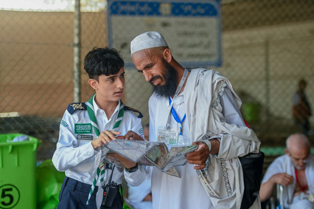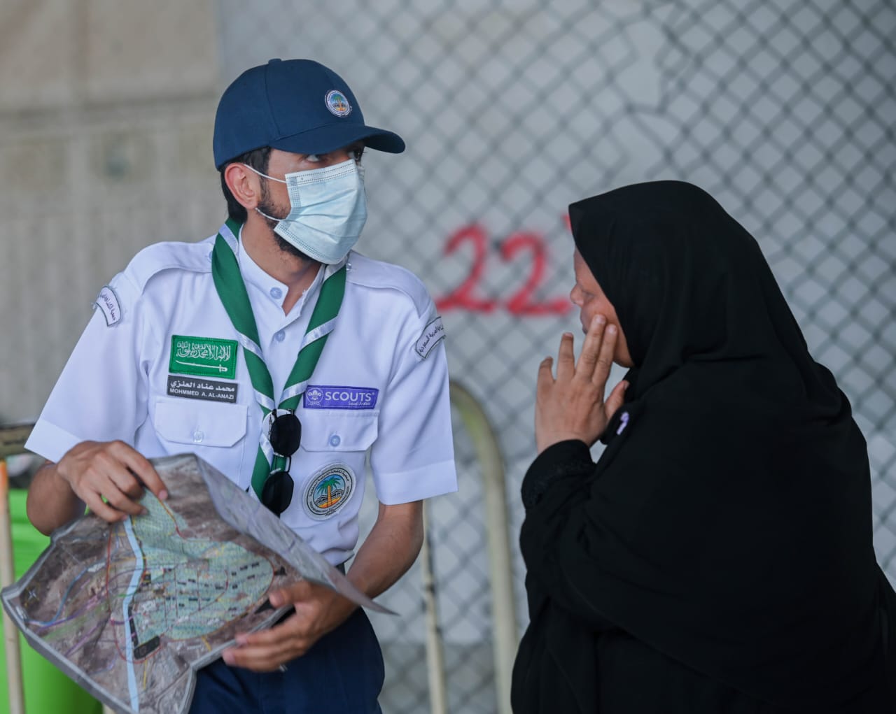 كثفت جمعية الكشافة العربية السعودية من تواجد الكشافين، اليوم الثاني من أيام التشريق في مشعر منى للمساهمة في إرشاد الحجاج التائهين حيث بدأ المتعجلون برمي الجمرات الثلاث بيسر وسهولة قبل أن يتوجهوا إلى بيت الله الحرام تحفهم عناية الله ورعايته؛ حيث يقوم الكشافة بالتعاون مع وزارة الحج والعمرة من خلال 16 مركز "نسك وعناية" من بينها 4 متنقلة منتشرة في مشعر منى بإرشاد الحجاج التائهين عن طريق تحديد جهة الحاج التائه بعد التعرف على جنسيته ورقم مكتبه بعد قراءة المعلومات المسجلة عبر الباركود في بطاقة "نسك".