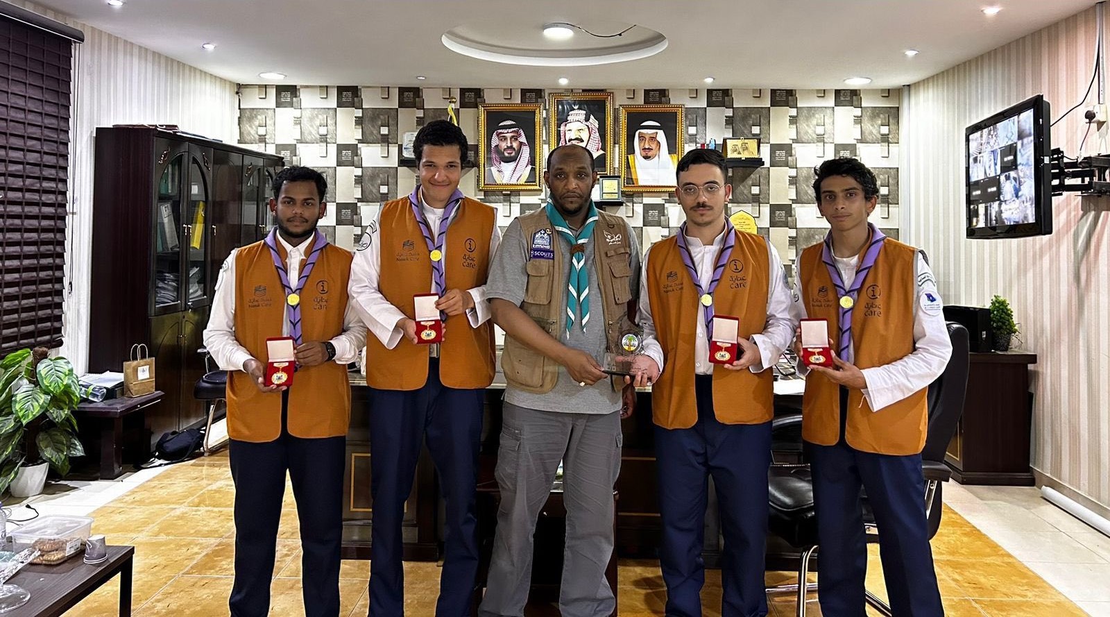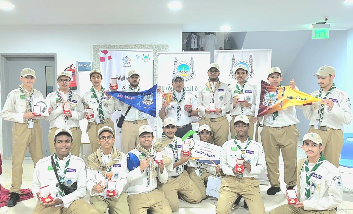 كما حصدت 32 وسام تميز ذهبي لجميع أعضاء الفريق الكشفي المشارك، وشهادة شكر من مستشفى منى الجسر على جهودهم في خدمة ضيوف الرحمن.