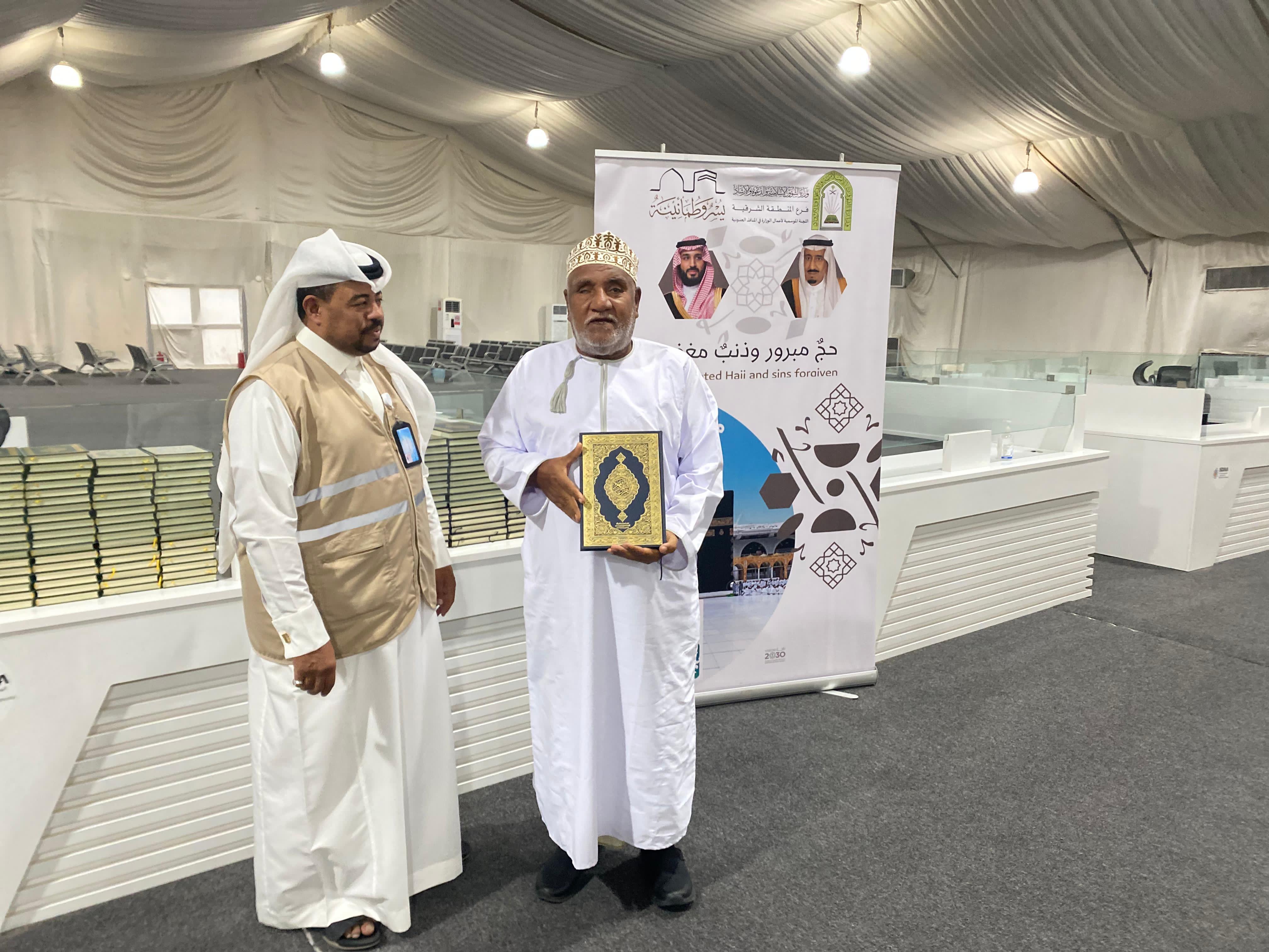 تواصل وزارة الشؤون الإسلامية والدعوة والإرشاد، ممثلة بفرعها في المنطقة الشرقية، توزيع هدية خادم الحرمين الشريفين الملك سلمان بن عبدالعزيز آل سعود -حفظه الله- حيث تم توزيع أكثر من 2560 نسخة من المصحف الشريف -حتى اليوم- على حجاج بيت الله الحرام المغادرين إلى ديارهم، عبر منفذ “الربع الخالي” الحدودي مع سلطنة عمان الشقيقة.