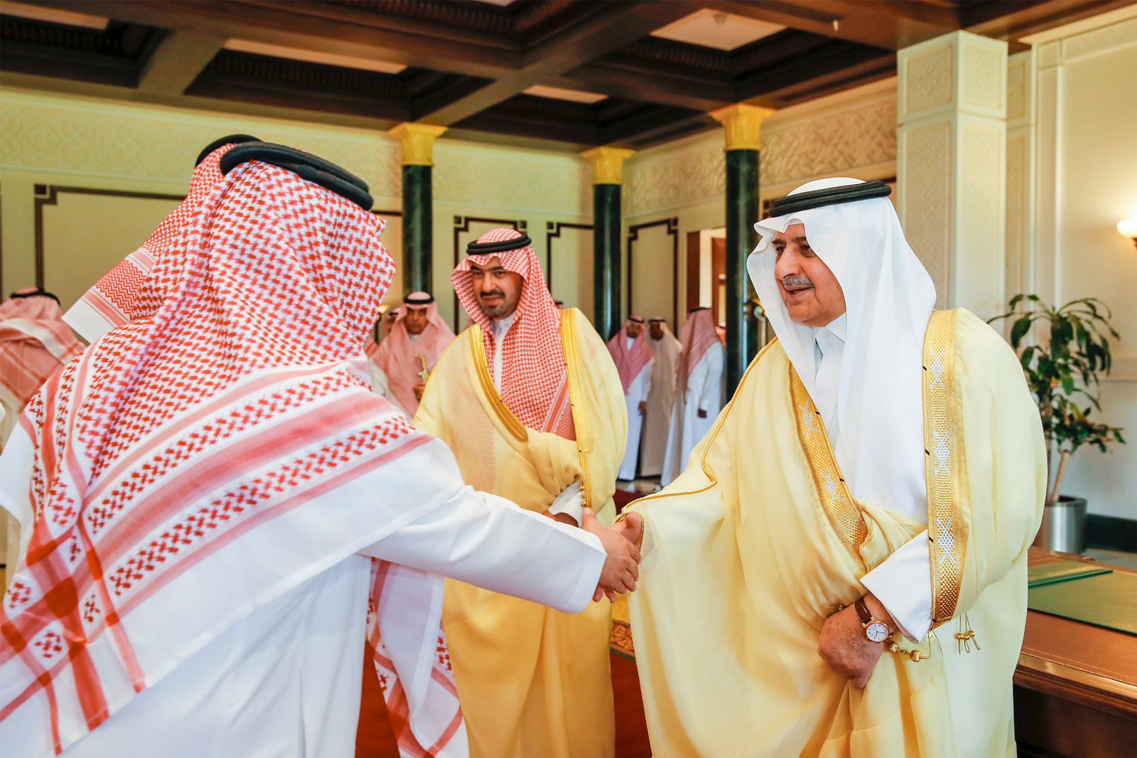 وفي بداية الاستقبال نوه سموه بالنجاح الكبير الذي تحقق في موسم حج هذا العام والذي تحقق بفضل لله تعالى ثم بالتوجيهات الكريمة والمتابعة والإشراف من خادم الحرمين الشريفين الملك سلمان بن عبدالعزيز آل سعود وسمو ولي العهد - حفظهما الله – مشيدا بالجهود التي تقوم بها المملكة في خدمة ضيوف الرحمن وما قدم لهم من خدمات وتسهيلات ليؤدوا مناسكهم بكل يسر وسهولة.