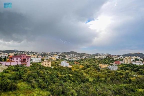 أجواء المطر ترسم في سماء منطقة الباحة لوحة من الجمال الرباني، حيث أضاء البرق سماءها وسط زخات المطر