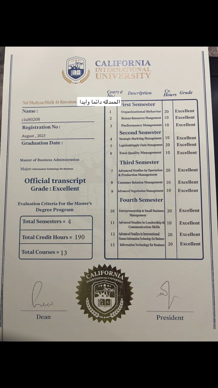 حصلت سيدة الأعمال والكاتبة أ. نوف الرويسان، على شهادة التميز من جامعة كاليفورنيا الدولية، تقديراً للأداء الاستثنائي الذي قدمته في مجال التنمية الإدارية والقيادة الإدارية الحديثة، لتصبح بذلك أول سعودية تحصل على هذه الشهادة.