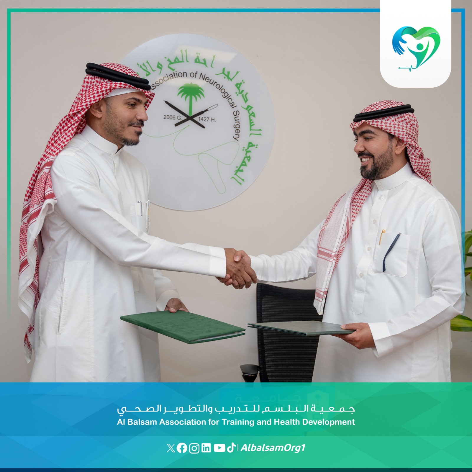 وقع مذكرة التعاون الدكتور محمد المشعلي رئيس مجلس إدارة جمعية  البلسم  «البلسم»، والدكتور عبد الرزاق عجلان رئيس الجمعية السعودية لجراحة  المخ والأعصاب  بجامعة الملك سعود.