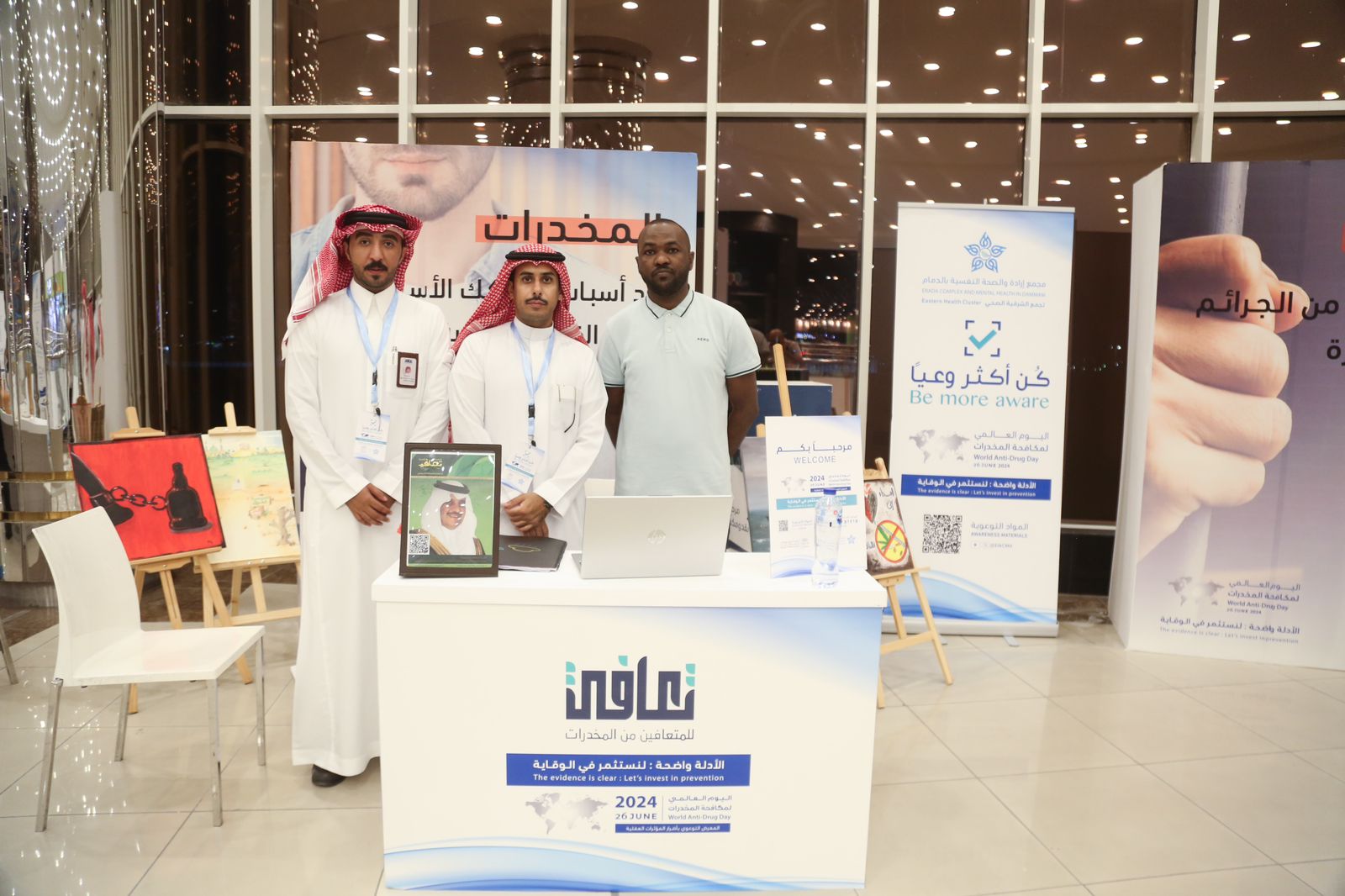 افتتح مدير عام فرع وزارة الشئون الإسلامية والدعوة والإرشاد بالمنطقة الشرقية الشيخ عمر الدويش معرض التوعوي الذي يقام بمناسبة اليوم العالمي لمكافحة المخدرات وذلك بحضور مساعد مدير السجون العميد أحمد القحطاني وممثل إرادة الدكتور عبدالخالق الغامدي وممثل جمعية تعافي الخيرية الأستاذ عثمان الزهراني .