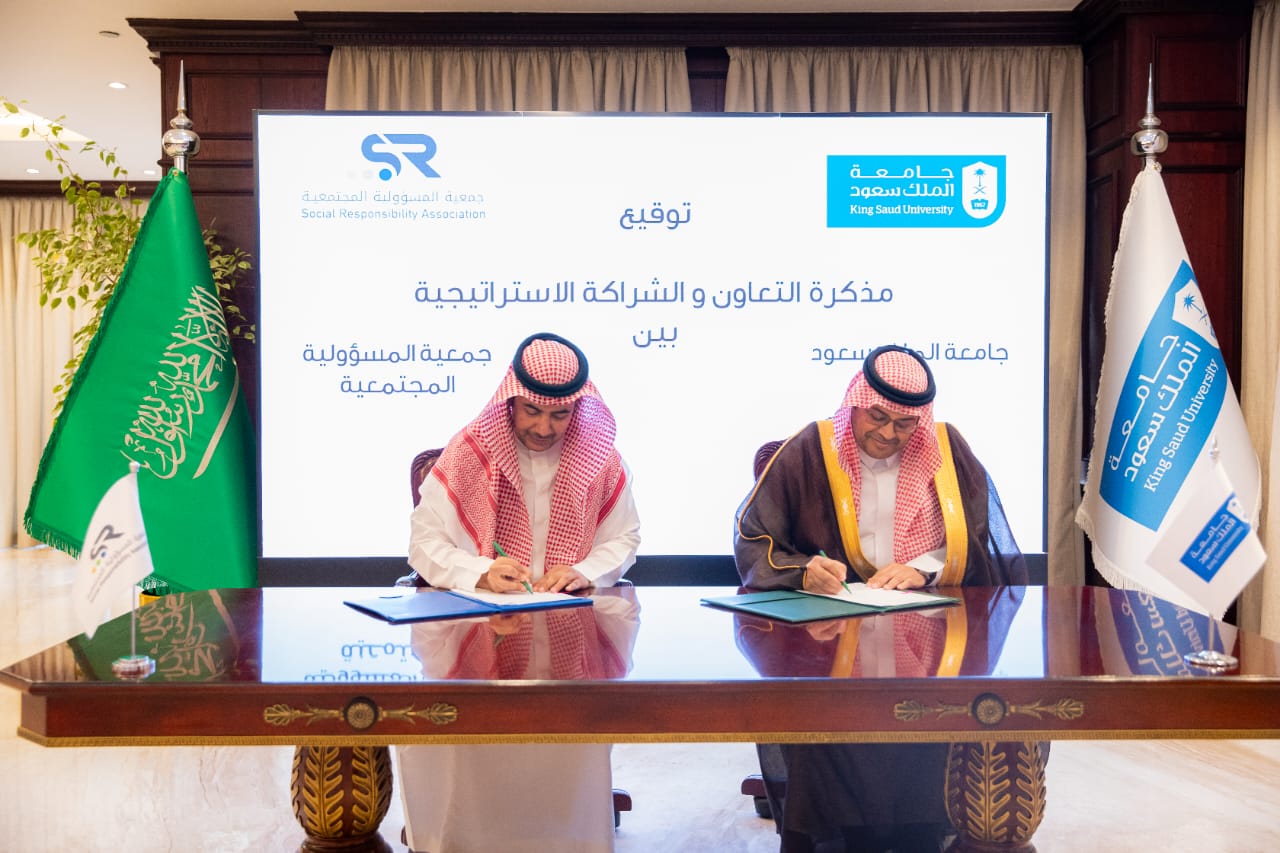 وقعت  جامعة الملك سعود  ممثلة بالأستاذ الدكتور علي بن محمد مسلمي نائب رئيس الجامعة للتخطيط والتطوير إتفاقية تعاون وشراكة استراتيجية مع جمعية المسؤولية المجتمعية ممثلة بالأستاذ سعود بن حسين السبيعي رئيس مجلس إدارة الجمعية في مقر الجامعة.