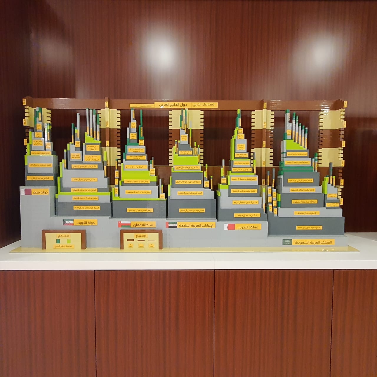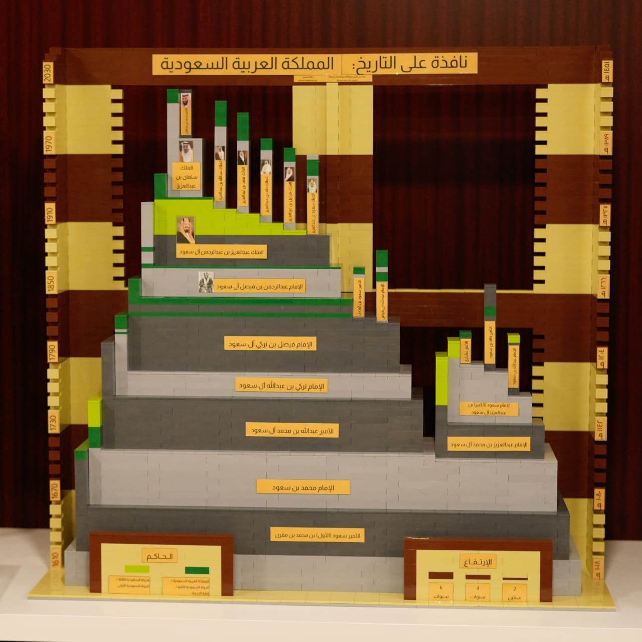 باستخدام أكثر من 18 ألف قطعة من قطع الليجو، شكل المواطن خالد سعيد العبدالله، مجسما لتاريخ  الدولة السعودية  وحكامها منذ نشأت إماراة الدرعية مرورا بالدولة السعودية الأولى ثم الثانية وأخيرا الثالثة، من خلال تصميم مجسم بارتفاع 212 سم وبعرض 153 سم، وهو يمثل غرس الماضي لحكام المملكة وسجلهم الزمني من تاريخ الولادة، مرورا بتاريخ تولي الحكم والوفاة.