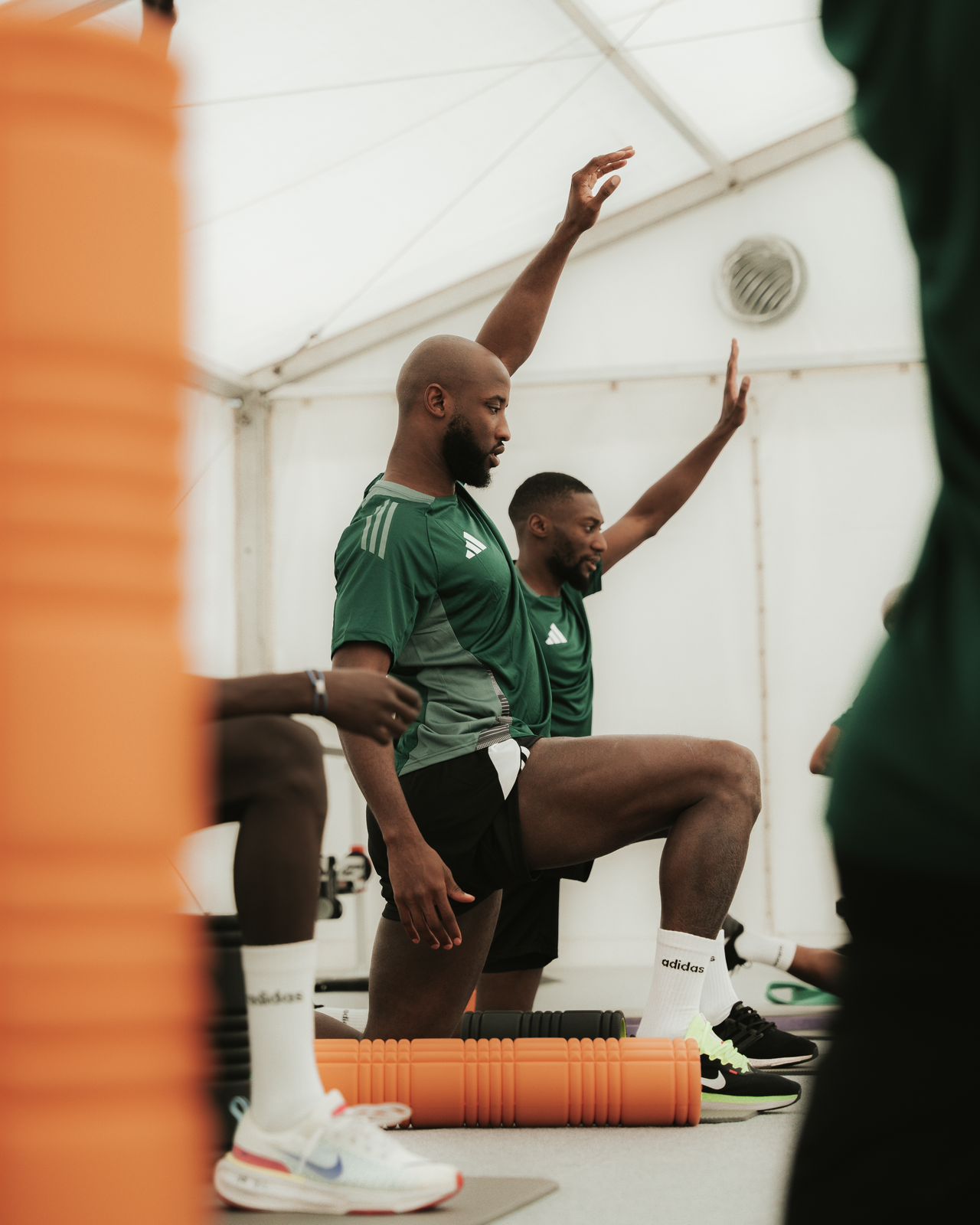وانطلقت الفترة المسائية بتمرين اللاعبين في الصالة الرياضية مع إجراء عمليات الإحماء خلالها.