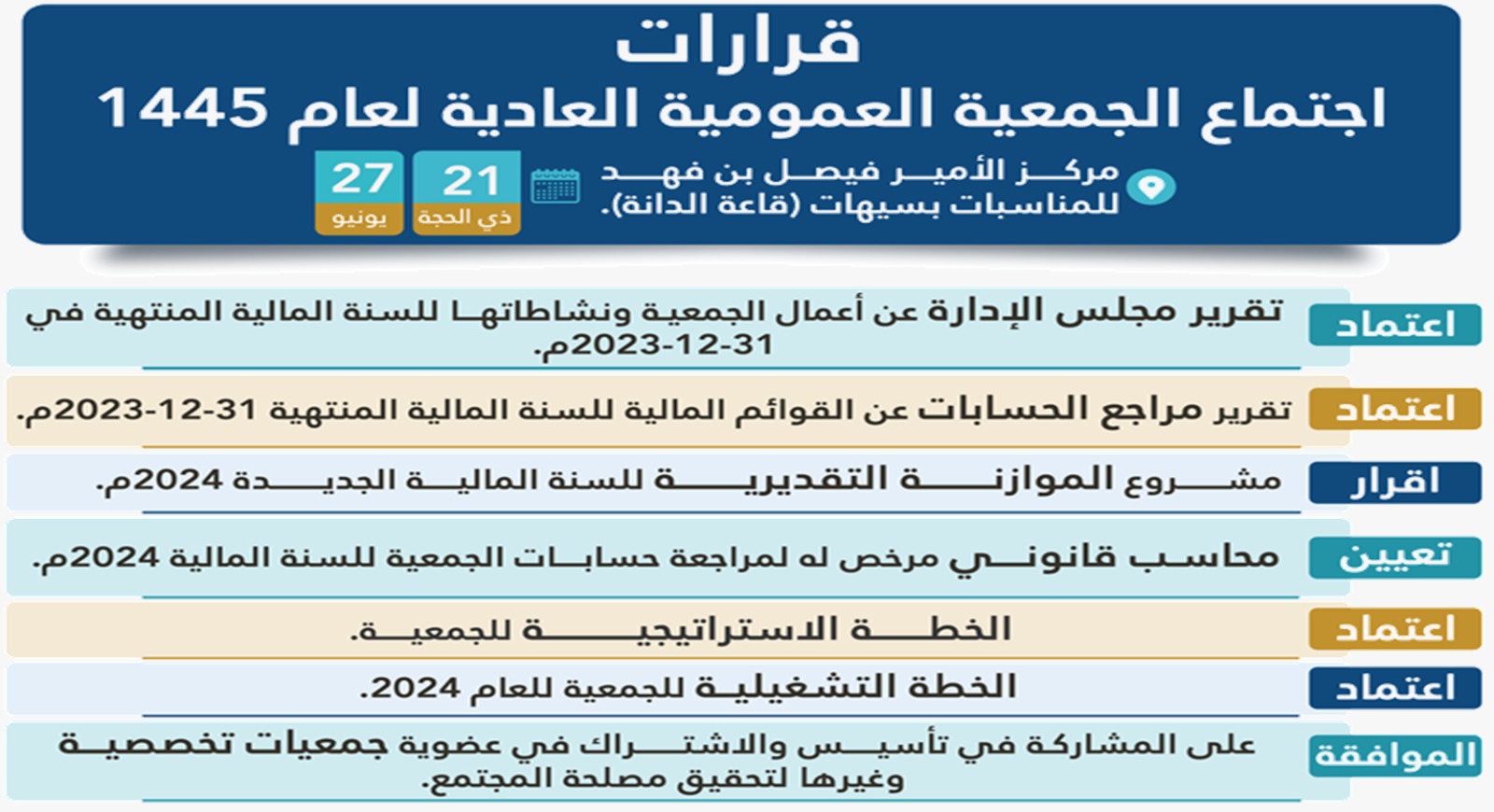 أصدر مجلس إدارة جمعية سيهات للخدمات الاجتماعية "سعادة " تقريرا يتضمن تقييم اجتماع الجمعية العمومية الأخيرة المنعقدة بتاريخ 27 يونيو.