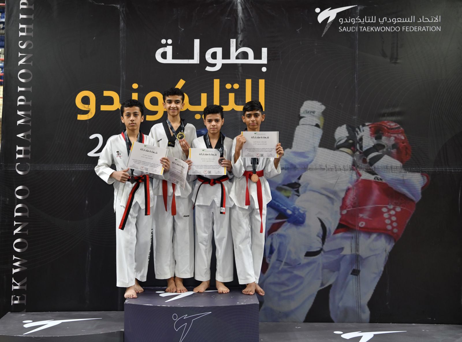 أقام الاتحاد السعودي للتايكوندو منافسات بطولة المملكة المفتوحة للهيئات والأكاديميات لدرجة الناشئين بمشاركة (18) هيئة وأكاديمية، على صالة الأمير نايف الرياضية بالقطيف ، حيث حقق كأس البطولة أكاديمية الجوهرة وحلت أكاديمية الأبطال الدوليين في المركز الثاني وجاء مركز فايت كلوب ومركز فنون آسيا رابعاً ، شهدت البطولة مشاركة (23) حكم وحكمة من مختلف الدرجات بقيادة الدولي فايز السلولي ونائبه أحمد الحياني بجانب مقيّم الحكام الأولمبي غازي الغانم، وأدار المسابقات رئيس لجنة المسابقات أمين آل وحيد الذي وجّه شكره لمكتب وزارة الرياضة بمحافظة القطيف ممثلاً بمندوبي المكتب زهير المرزوق وزهير أبوالرحي ولإدارة مدينة الأمير نايف الرياضية بالقطيف على جهودهم وتعاونهم في تنظيم البطولة موضحاً أن اختيار القطيف ضمن استراتيجية الاتحاد السعودي للتايكوندو لنشر اللعبة وتلبية لرغبة الأهالي في حضور المنافسات لأبنائهم وتشجيعهم، من جانبه أوضح رئيس اللجنة الفنية الكابتن ثامر السعران أن هذا الحراك الشمرلي للعبة ينطلق من توجيهات رئيس الاتحاد العميد شداد العمري، الذي رسم مع أعضاء مجلس الإدارة ملامح عديدة تختلف كل موسم عن سابقه في سبيل نشر اللعبه ووصولها لأكبر شريحة من جميع الفئات.