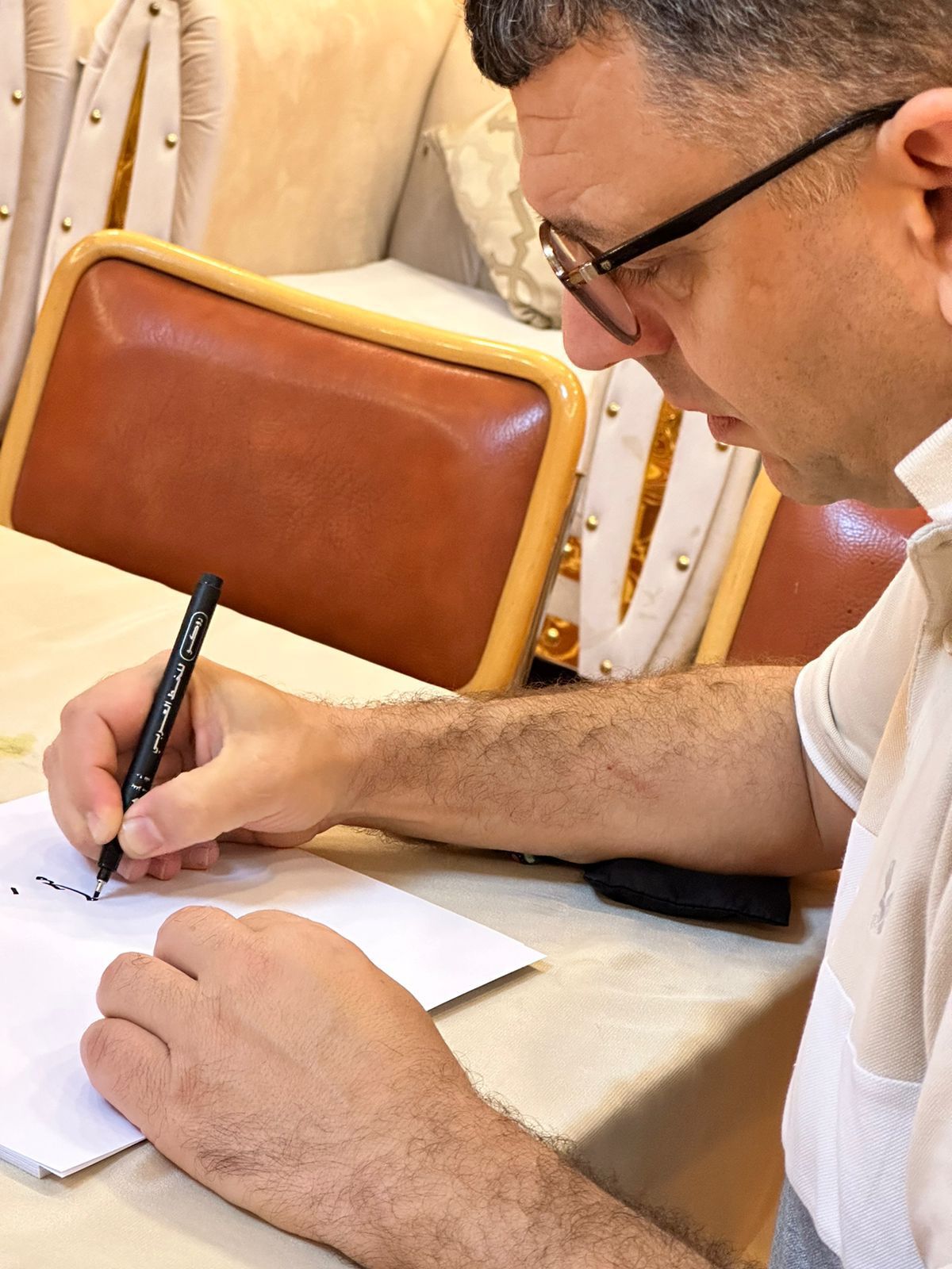 نظمت جمعية الثقافة والفنون بمنطقة الحدود الشمالية ورشة عمل عن الخط العربي نفذها المدرب الخطاط فرحان العمر وأشرف عليها مسؤول الفن التشكيلي والخط العربي بالجمعية الأستاذ إدريس لافي.