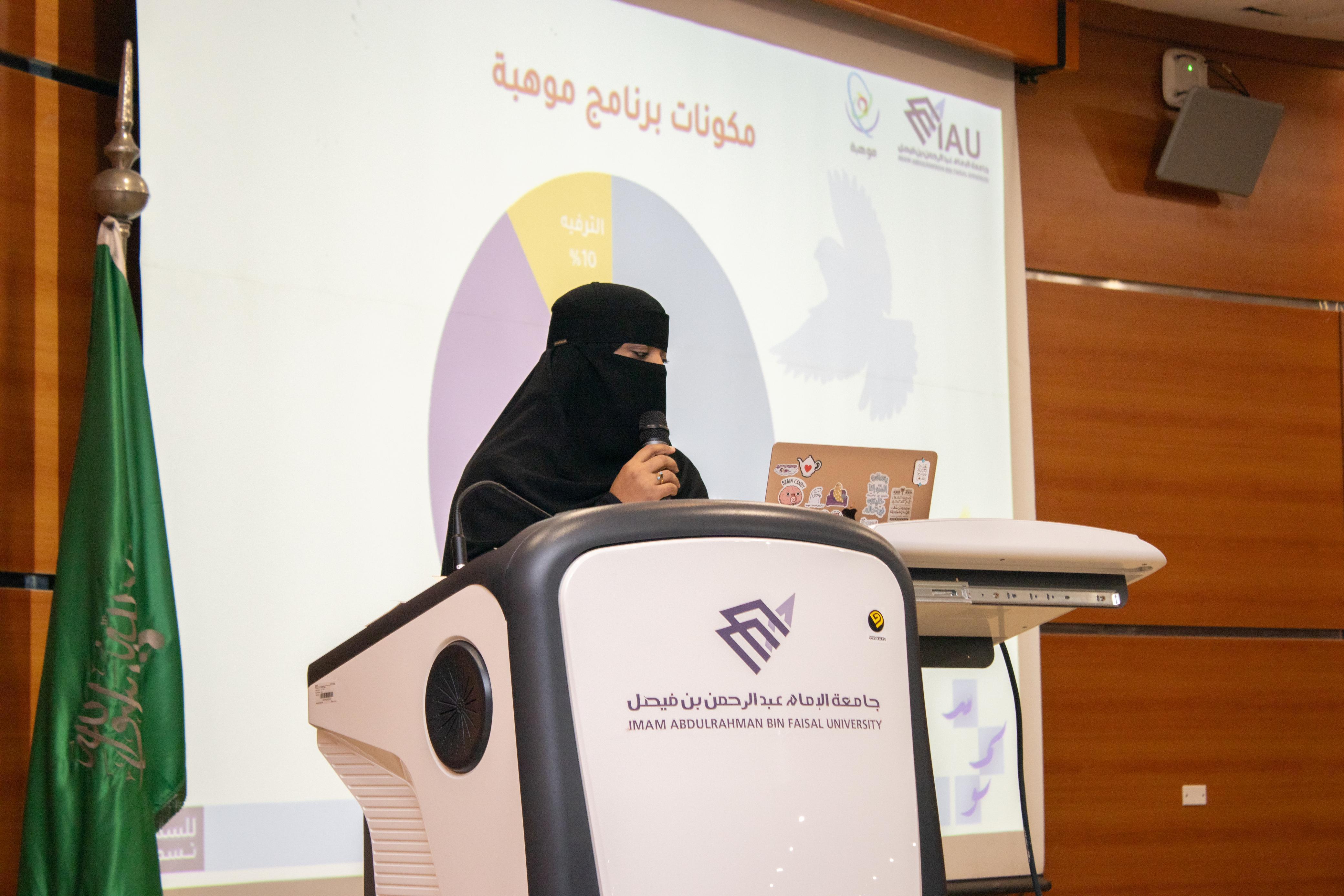 من جانبها أفادت رئيسة قسم الطالبات الدكتورة مشاعل النمشان أن الجامعة تعمل على إعداد جيل مبدع يحمل راية التجديد والتطوير، وذلك إيمانًا منها بأن تأهيل الموهوبين هو مفتاح رقي الأمم وازدهارها، وأن اكتشاف القدرات والمهارات والاستثمار بها لها بالغ الأثر في الرقي والازدهار، مشيرة أن البرنامج يسعى إلى أن يمتلك الطلاب والطالبات قدرات تمكنهم من المنافسة عالميًا من خلال تعزيز وتنمية الذكاءات المتعددة للباحث هاورد قارندر وهي الذكاء الحسابي المنطقي ، و الذكاء الطبيعي ، و الذكاء الاجتماعي ، و الذكاء المكاني ، و الذكاء اللغوي ، والذكاء الحسي الحركي ، والذكاء الوجودي ، والذكاء الصوتي ، والذكاء العاطفي ، كما سيتخلل البرنامج رحلات علمية لعدد الكليات والمعامل في الجامعة للاطلاع عن قرب على كيفية التعامل مع المواد والأجهزة والآليات فيها و التعرف على ما يقوم به الطالب الجامعي في هذه المعامل وعيش التجربة التي سيقدمها لهم المشرفين على هذه المعامل سواء الصحية او الهندسة او الحاسوبية وغيرها .