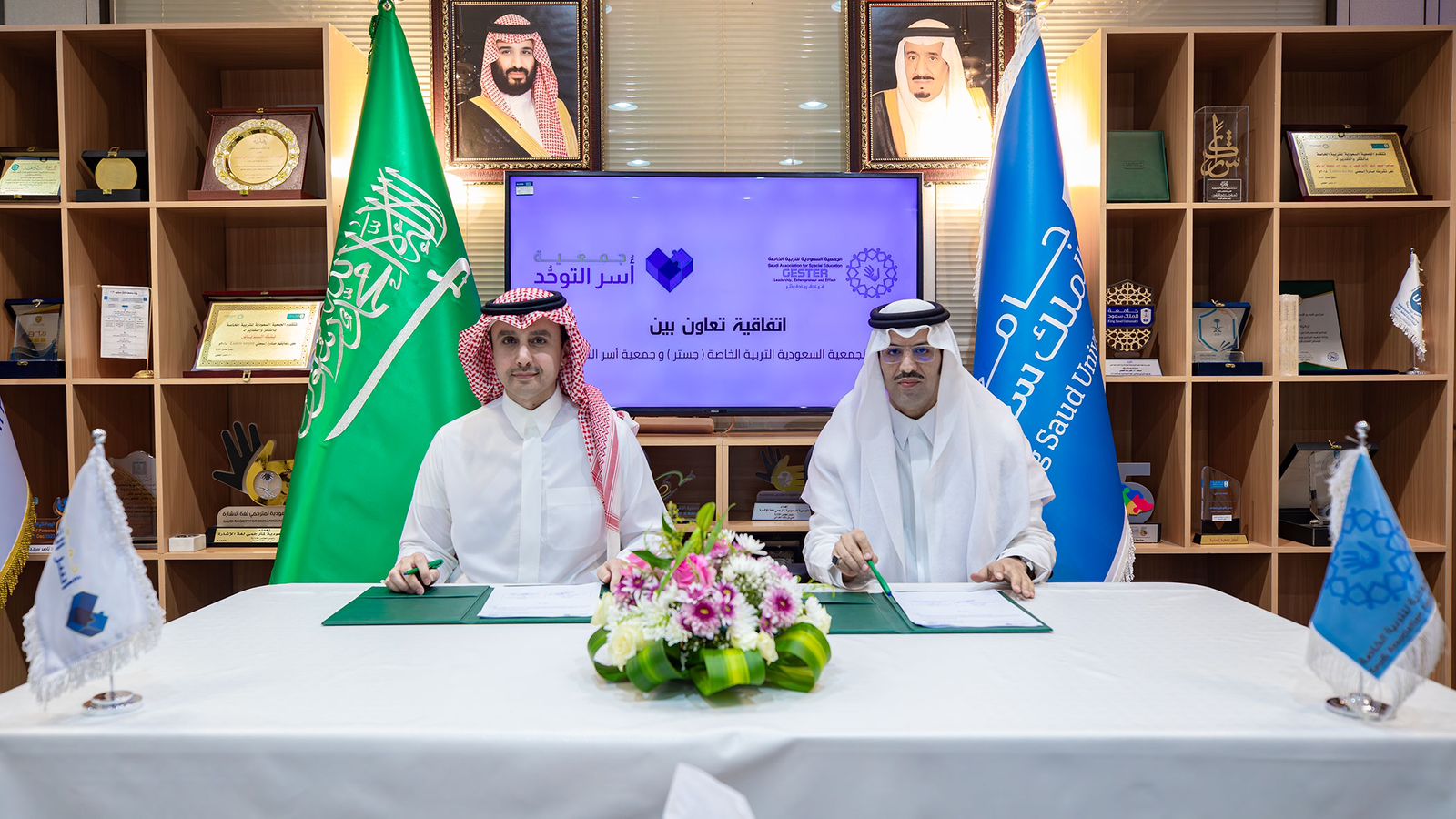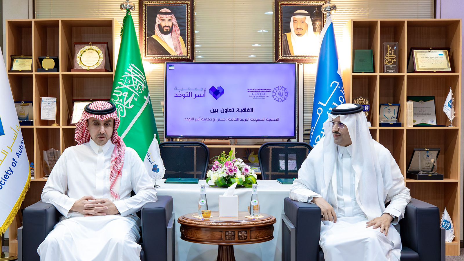 وقع مساء الاثنين الماضي سمو رئيس مجلس إدارة جمعية أسر التوحُّد الأمير سعود بن عبدالعزيز بن فرحان آل سعود مذكرة تفاهم مع الجمعية السعودية للتربية الخاصة ( جستر ) بوجود رئيس مجلس إدارة الجمعية الدكتور ناصر العجمي وحضور أمين عام الجمعية الأستاذة أريج المعلم .. في مقر جامعة الملك سعود بالرياض.