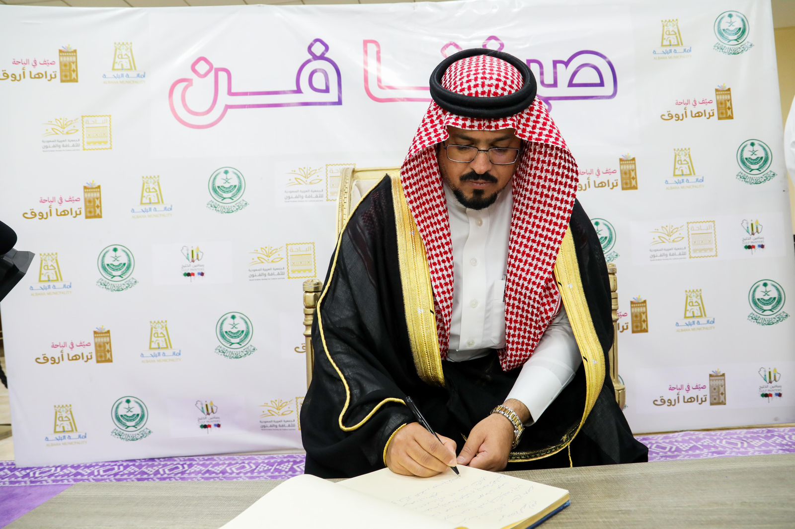 إفتتح سعادة أمين منطقة الباحة الدكتور علي بن محمد السواط رئيس لجنة فعاليات صيف الباحة معرض الفنون التشكيلية تحت عنوان " صيفنا فن " بتنظيم من جمعية الثقافة والفنون بمنطقة الباحة وبالشراكة والتعاون مع أمانة منطقة الباحة ونادي رسامين الخليج ، وذلك بقاعة الأمير حسام للمعارض والمؤتمرات بالباحة .