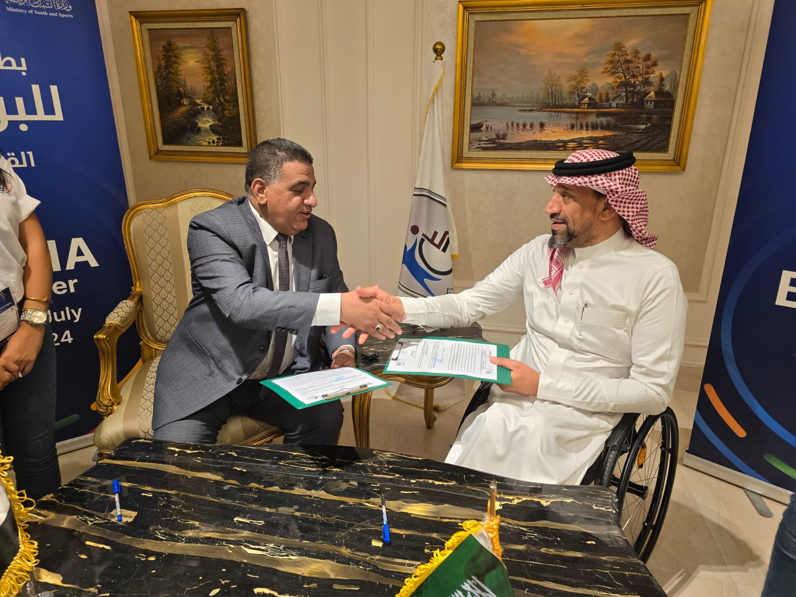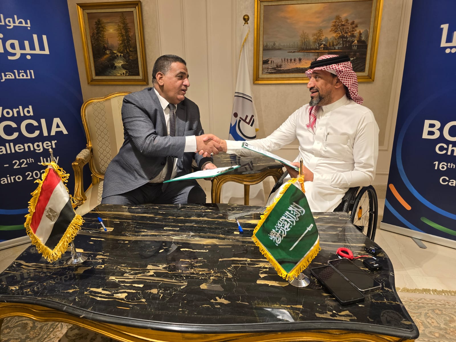 وقع رئيس الاتحاد السعودي للبوتشيا الأستاذ محسن آل سماعيل والدكتور أحمد آدم رئيس الاتحاد المصري للشلل الدماغي أتفاقية تفاهم بين الاتحادين السعودي والمصري من أجل رفع مستوى التعاون المشترك، وذلك على هامش بطولة العالم للبوتشيا التي أقيمت في جمهورية مصر العربية من “16 – 22/ 2024/07 .