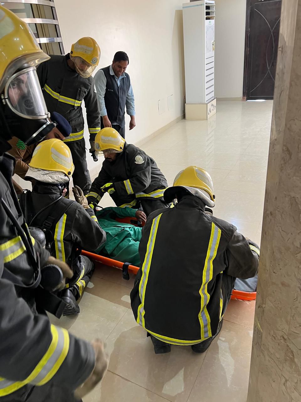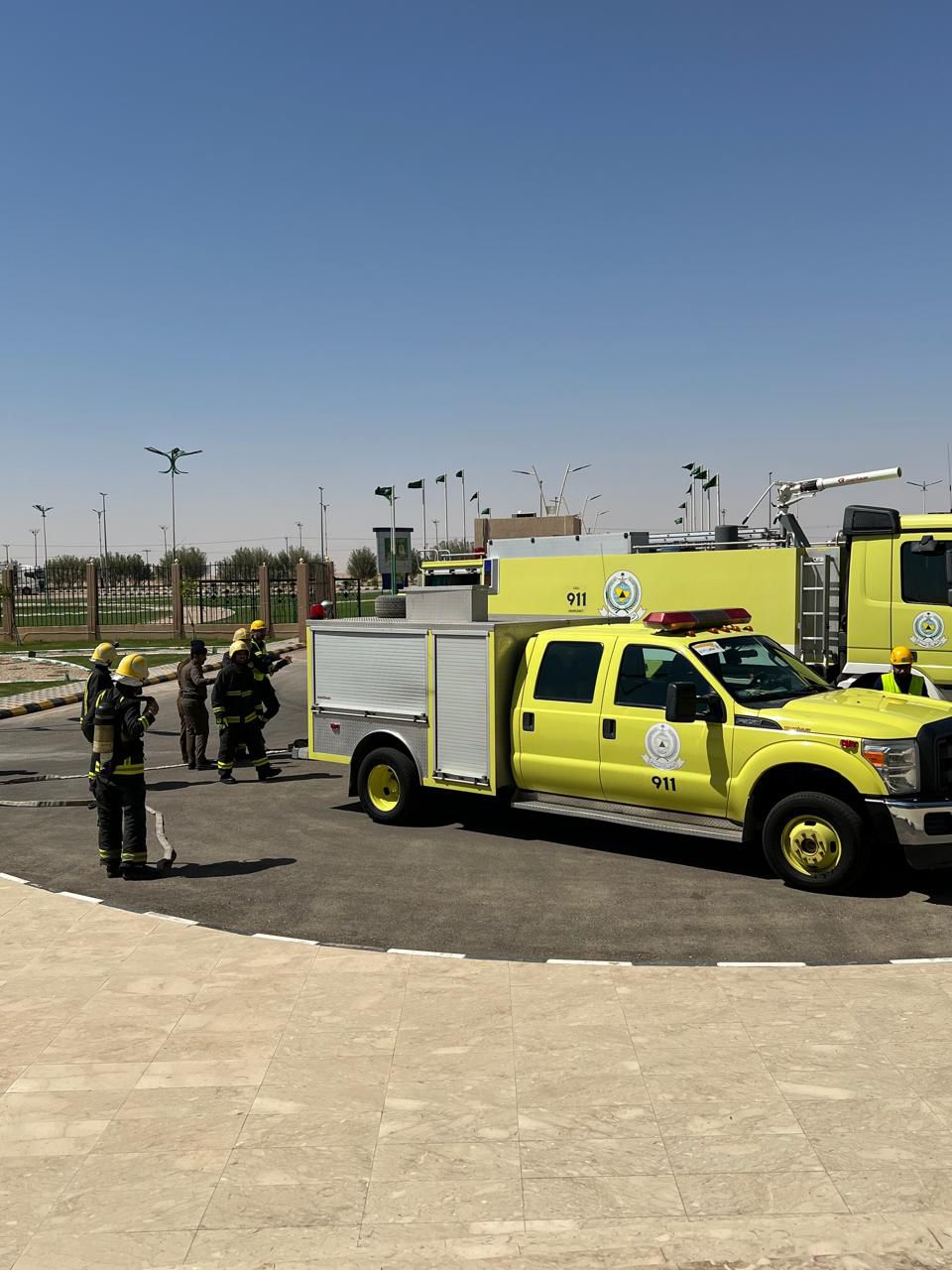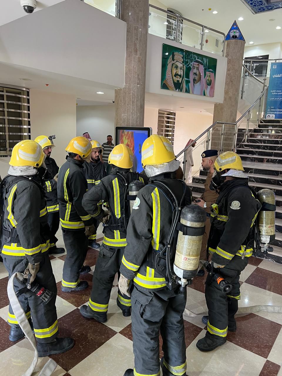 وقد بدأت الفرضية بإطلاق صفارات الإنذار داخل المبنى، حيث تم إخلاء الموظفين والمراجعين بسرعة منظمة إلى نقاط التجمع الآمنة؛ وتدخلت فرق الدفاع المدني بسرعة، حيث قامت بإطفاء "الحريق" باستخدام أحدث المعدات والتقنيات المتاحة؛ كما قدمت فرق الهلال الأحمر الإسعافات الأولية للمصابين "الافتراضيين"، ونُقلوا إلى المستوصف المحلي لتلقي العلاج.