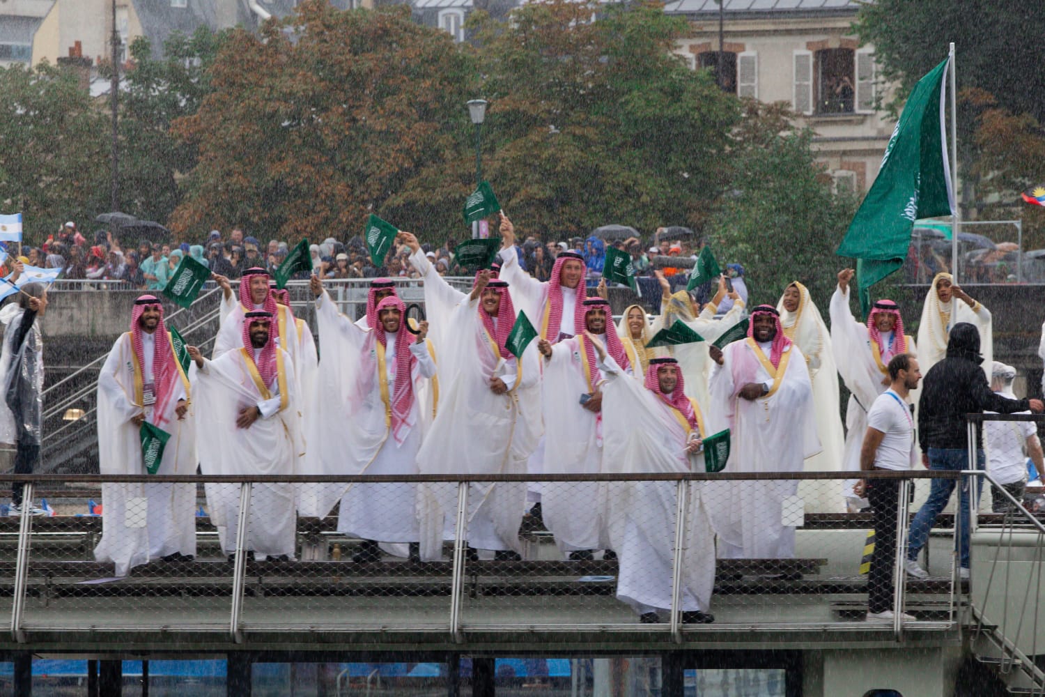 حظي الزي السعودي الذي ارتداه ممثلي المملكة في طابور عرض الدول المشاركة، باعجاب وسائل الإعلام العالمية، والجمهور الحاضر لفعاليات الحفل، حيث قام معظم الحاضرين بالتصفيق للاعبين واللاعبات السعوديين لحظة دخولهم مياه نهر السين.