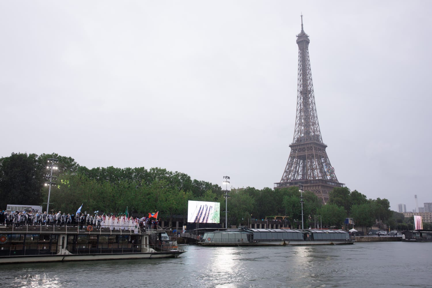 وشهد حفل الافتتاح المميز، والذي أقيم خارج ميادين الملاعب للمرة الأولى على مستوى التاريخ، إقامة طابور عرض الدول المشاركة التي بلغ عددها 206 دولة، على متن 100 قارب، قطعت حوالي 6 كيلو مترات على ماء نهر السين، بالإضافة للعديد من الفقرات الموسيقية وعروض الألعاب النارية، والفقرات المحاكية لتاريخ وثقافة فرنسا.
