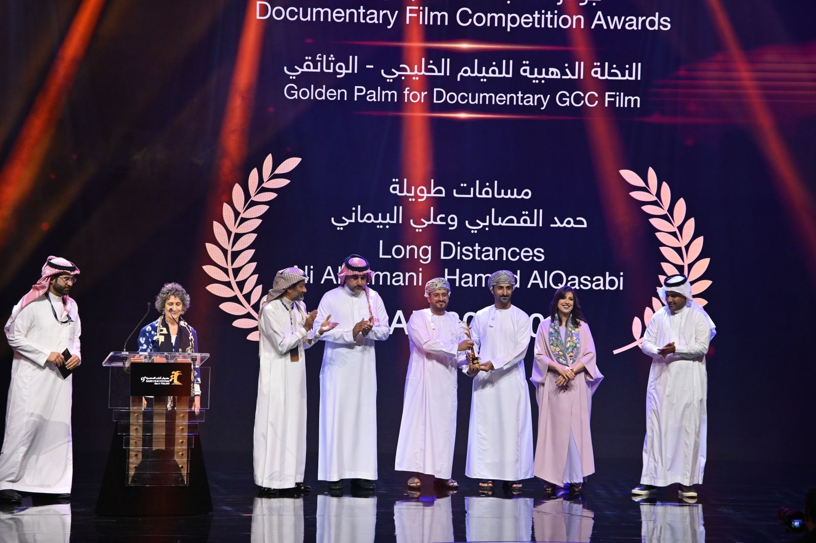 أعلن مهرجان أفلام السعودية الذي تنظمه جمعية السينما بالشراكة مع مركز الملك عبد العزيز الثقافي العالمي (إثراء) وبدعم هيئة الأفلام التابعة لوزارة الثقافة، نتائج الفائزين في الدورة التاسعة بجوائز الأفلام القصيرة والطويلة والوثائقية، حيث حصد فيلم "مسافات طويلة" جائزة النخلة الذهبية للفيلم الخليجي – الوثائقي، فيما نال جائزة جبل طويق لأفضل مدينة سعودية فيلم "العرضة النجدية"، فيما استحوذ فيلم "تروكاج" على جائزة النخلة الذهبية (الموضوع الوثائقي الفريد)، وأما جائزة النخلة الذهبية لجائزة لجنة التحكيم ظفربها فيلم "قصة ملك الصحافة"، واستكمالًا للجوائز الذي أعلنت في حفل ضخم داخل القاعة الكبرى في مركز "إثراء"، تمكّن فيلم "تحت سماء واحدة" بالفوز عن جائزة النخلة الذهبية لأفضل فيلم وثائقي، ومما يبدو لافتًا أن فيلم "طريق الوادي" من إنتاج "إثراء"نال جائزة النخلة الذهبية عن أفضل ممثلة للفنانة أسيل عمران.