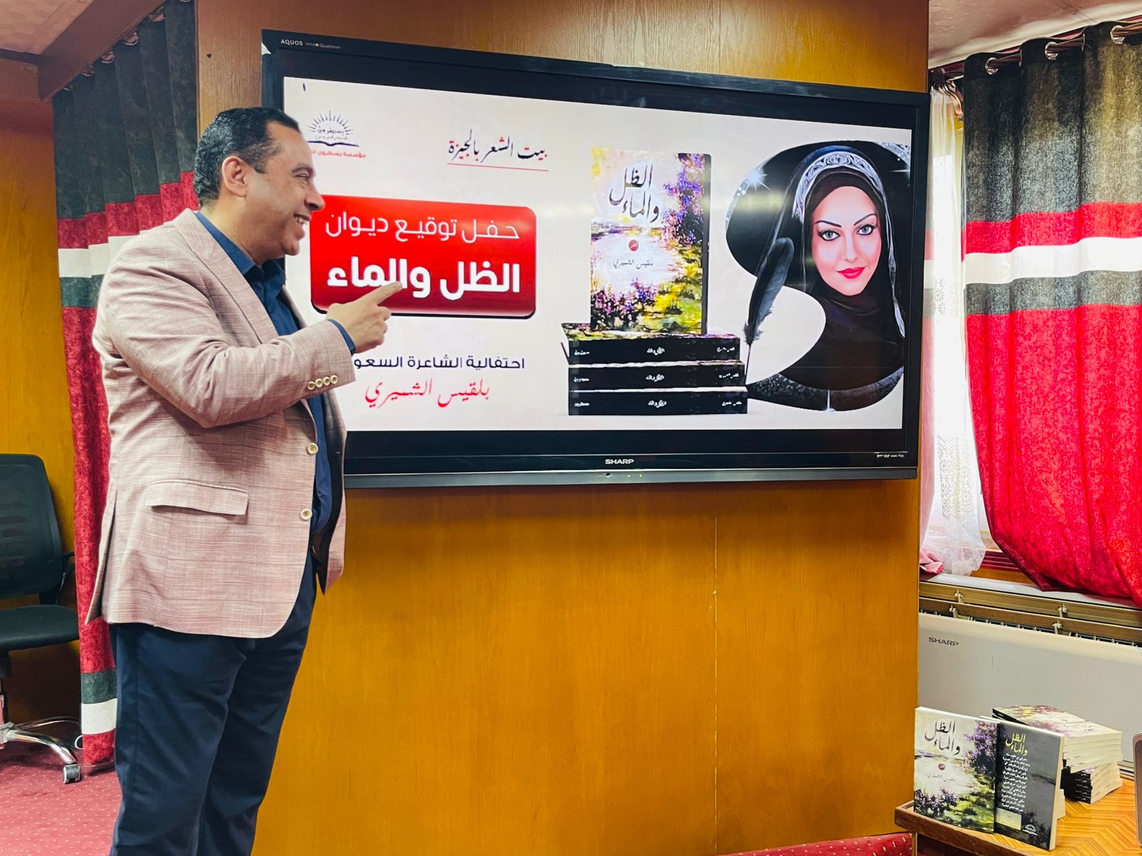وتحدث بهذه المناسبة الشاعرين الكبيرين جبر البعداني ومحمود حسن عن أهمية مكانة الشعر السعودي وإن تجاربه الشعرية جديرة بالاحتفاء والدراسة وكان لحضور الشاعر البعداني اللافت حيث شارك في حفل توقيع  الشاعرة بلقيس الشميري  بقصيدة بعنوان "بهية" عن مصر وأكدّ على أنّ الشعراء السعوديين مغامرون ومجرّبون والمغامرة والتجريب هما عماد الاختلاف وذروة سنامه" بالمناسبة الشاعر البعداني هو من يدير بيت الشعر بالجيزة الذي يقيم فعاليات شعرية وأدبية أسبوعية يرتادها كبار الشعراء والمثقفين، ويسهم في تطوير الشعر والأدب وتشجيع الشعراء المبدعين.