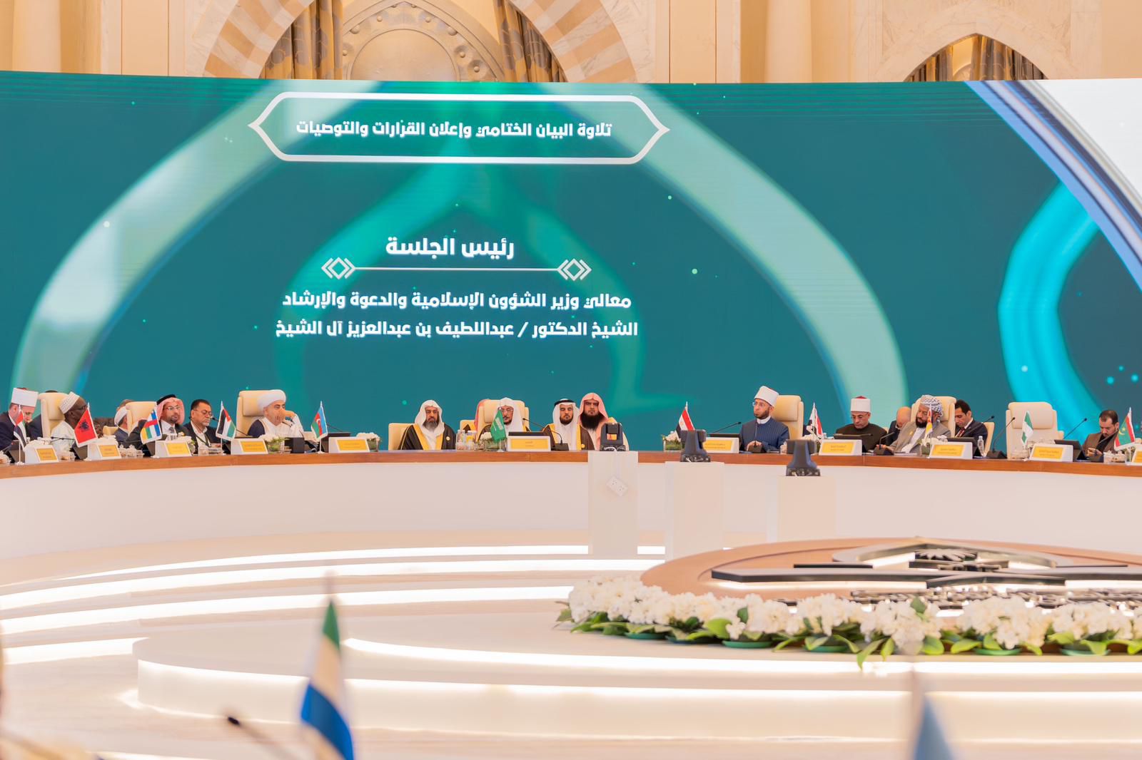 برعاية خادم الحرمين الشريفين الملك سلمان بن عبدالعزيز آل سعود ـ حفظه الله اختتم مساء اليوم الإثنين غرة شهر صفر لعام 1446هـ المؤتمر التاسع لوزراء الأوقاف والشؤون الإسلامية في دول العالم الإسلامي، الذي نظمته وزارة الشؤون الإسلامية والدعوة والإرشاد ـ تحت عنوان: (دور وزارات الشؤون الإسلامية والأوقاف في تعزيز مبادئ الوسطية وترسيخ قيم الاعتدال)، بمشاركة وزراء ومفتين ورؤساء مجالس إسلامية ب 62 دولة، والذي أقيم بمكة المكرمة.