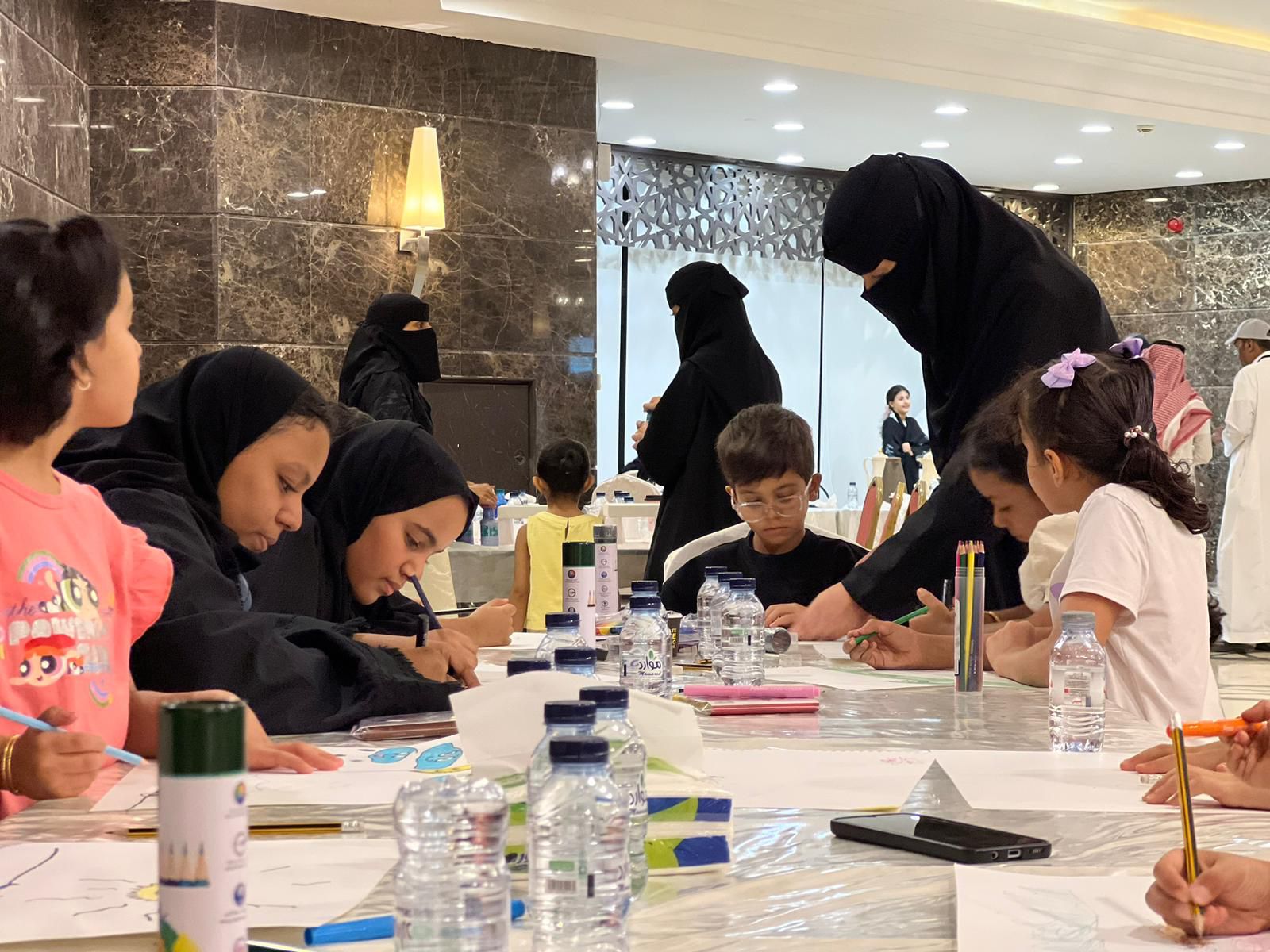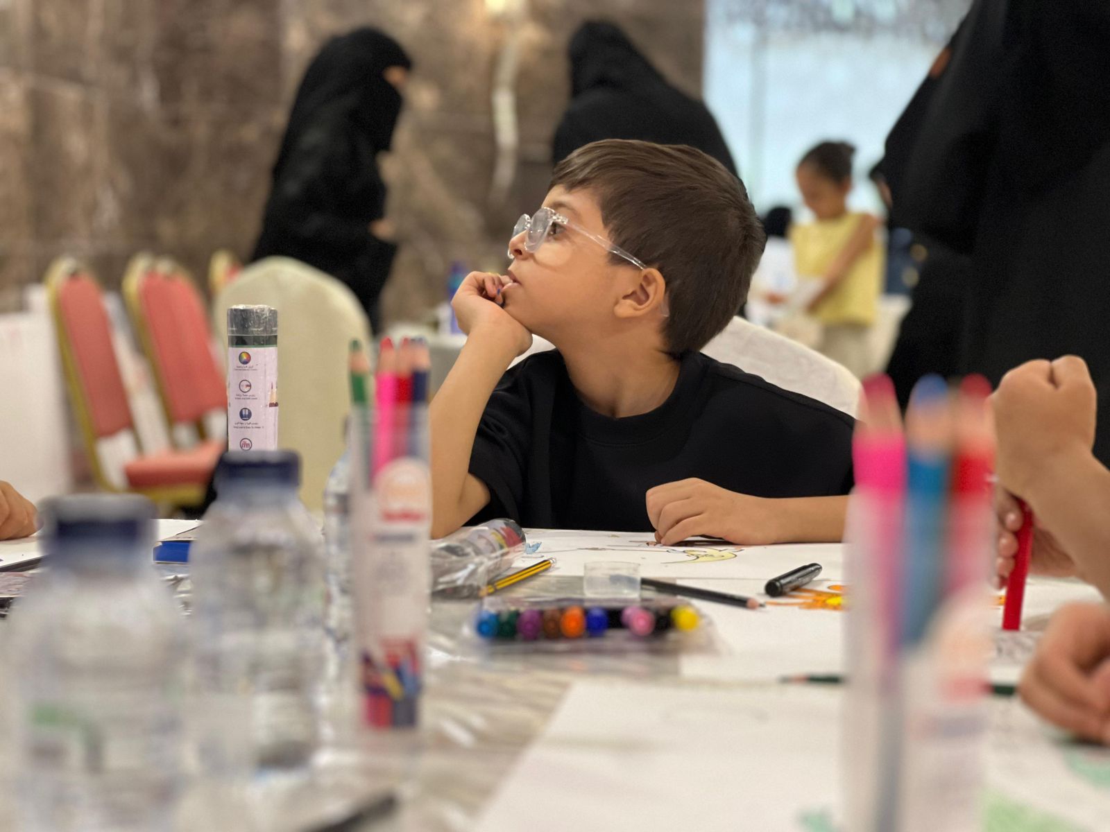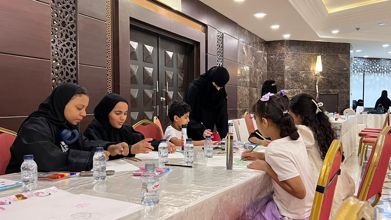 حيث افتتحت نشاطها بورشتي:سكب الألوان بقيادة أ.عبيد البراك وورشة فن الكاريكاتير للأطفال بقيادة أ.غدير الألمعي.