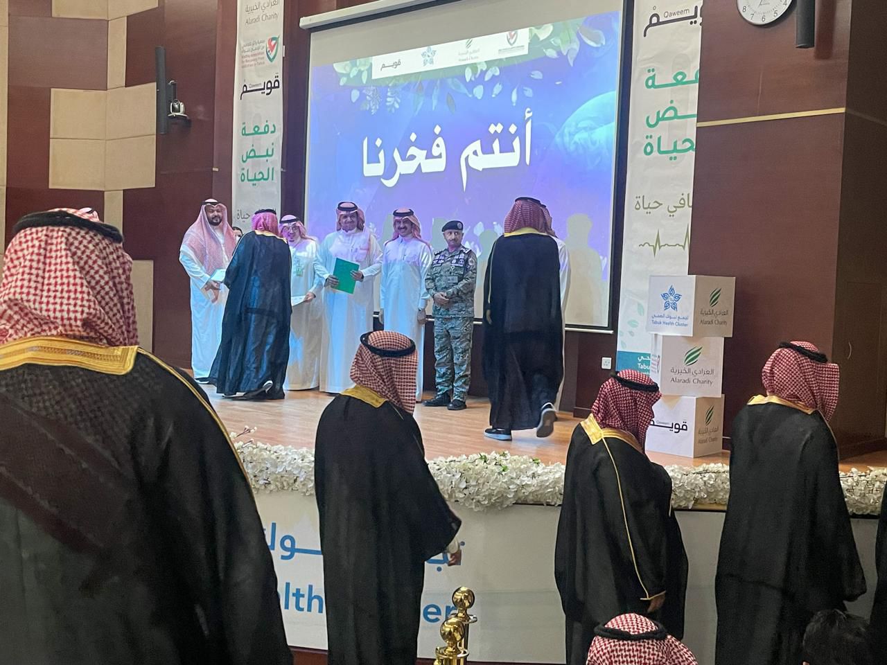 احتفى  مجمع إرادة  والصحة النفسية بمنطقة  تبوك  ممثلاً في منزل منتصف الطريق و الرعاية اللاحقة بتخريج 45 متعافيا من إدمان المخدرات وذلك بحضور  الرئيس التنفيذي لتجمع  تبوك  الصحي بالانابة الدكتور ماجد القحطاني ومدير مكافحة المخدرات بمنطقة  تبوك  اللواء سلوم بن مسعد النفيعي و مدير سجون منطقة  تبوك  العميد سعيد بن وازع القحطاني