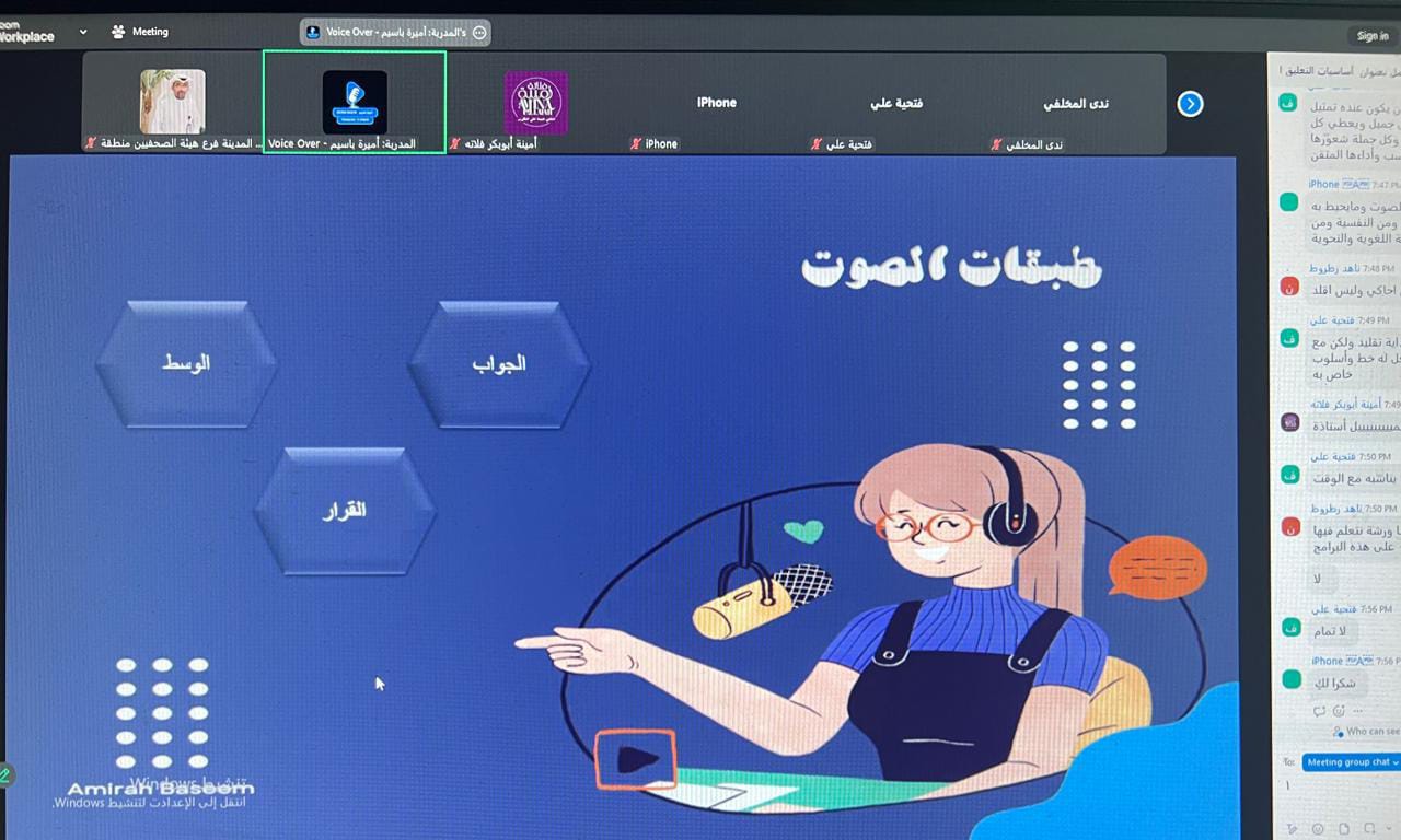 وبيّنت المدربة أميرة باسيم بأن هذه الورش التدريبية تسهم في إتاحة المجال للعديد من الخامات الصوتية الراغبة في التعلم وإتقان التعليق الصوتي في البرامج الإنتاجية المتنوعة.