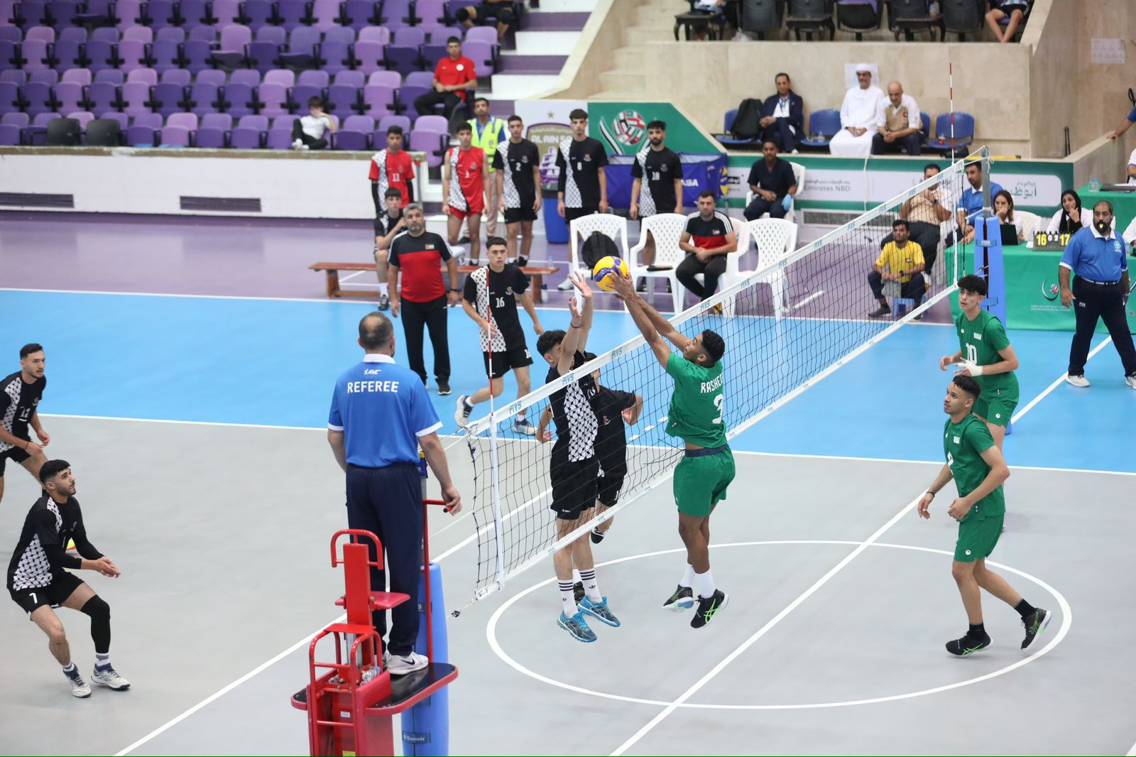 تصدر المنتخب السعودي مجموعته بعد تحقيقه الفوز الثالث على التوالي في بطولة غرب اسيا لمنتخبات الشباب تحت 20 عاماً للكرة الطائرة بعد فوزه على منتخب فلسطين بثلاثة اشواط نظيفة في المباراة التي جمعتهما على الصالة الرئيسية بنادي العين ليرتفع رصيده 9 نقاط محققاً العلامة الكاملة جاءت نتائج الاشواط 25/23 ، 25/17 ، 25/20