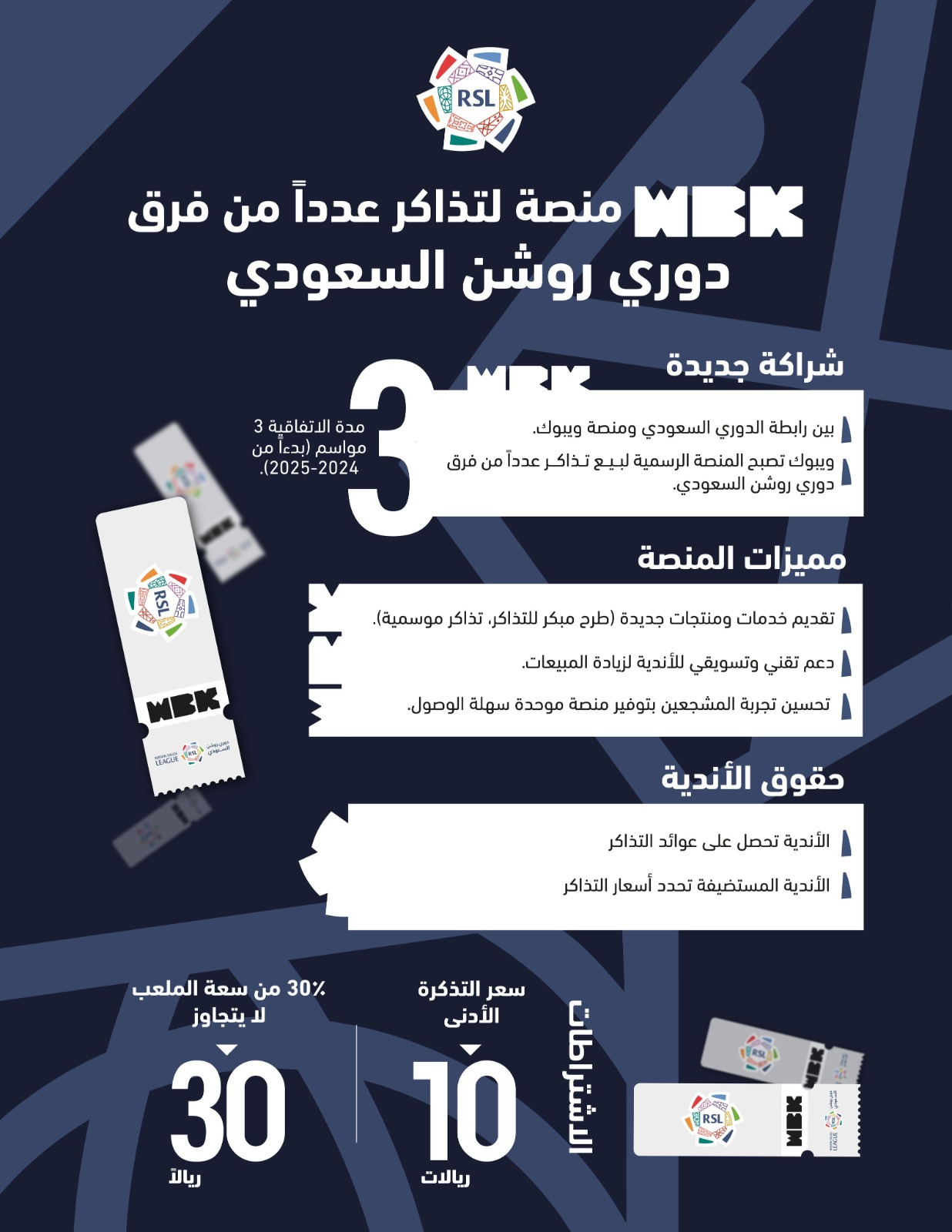 وستوفر هذه الشراكة المرونة لعدد من أندية الدوري، في تقديم خدمات ومنتجات جديدة مثل الطرح المبكر للتذاكر، وتوفير التذاكر الموسمية بناء على رغبات الأندية.