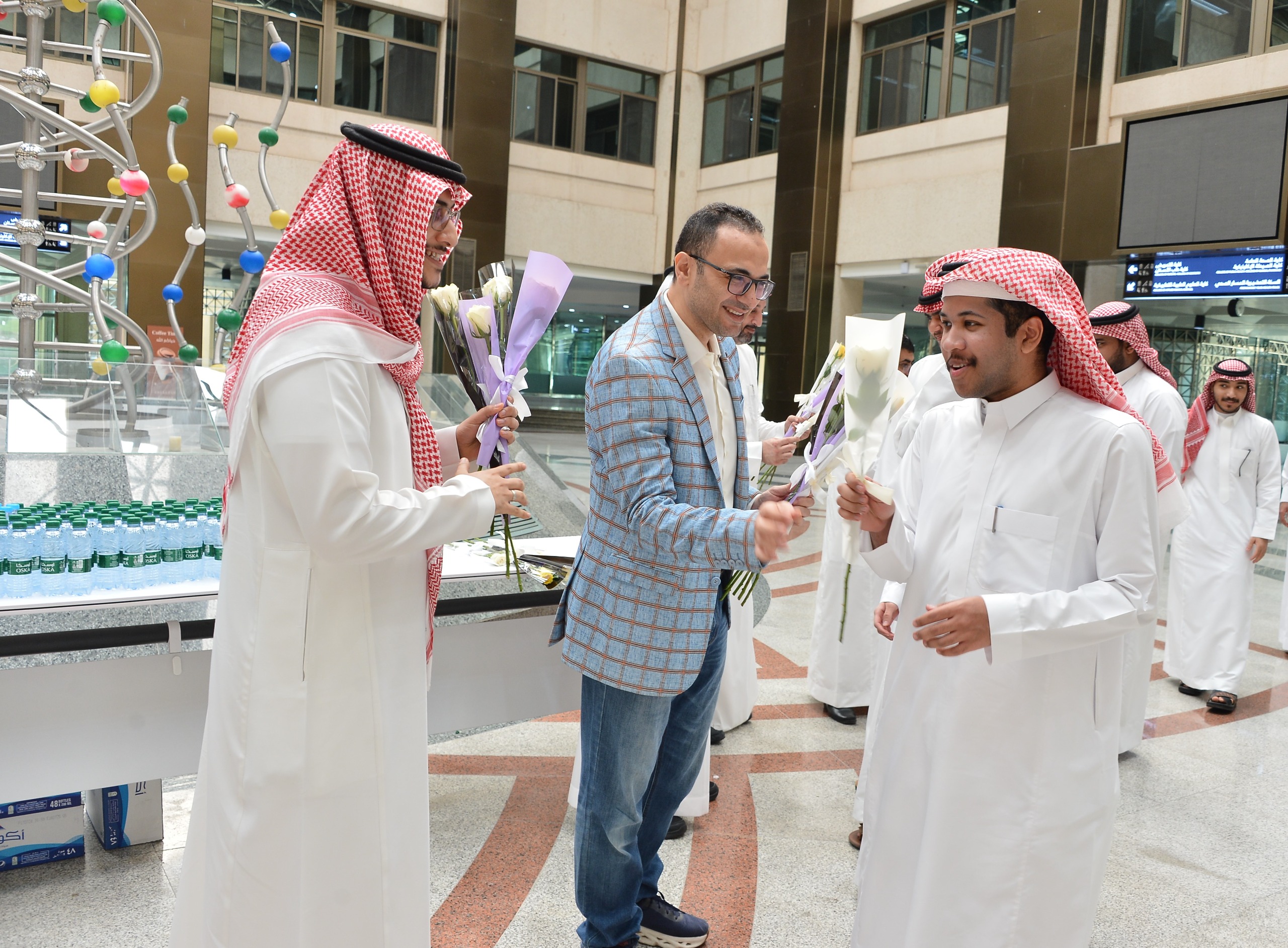استقبلت  جامعة الإمام عبدالرحمن بن فيصل  طلابها المستجدين حضورياً في مسارات الكليات للتعرف على الكليات والمباني الدراسية والمرافق في عدد من المواقع بالجامعة بحضور عميد عمادة السنة التحضيرية الدكتور ناصر الريّس ومشاركة وكلاء العمادة وأعضاء هيئة التدريس للطلاب والطالبات حيث قدمت لهم الورود وهنأتهم بالعام الجامعي الجديد .