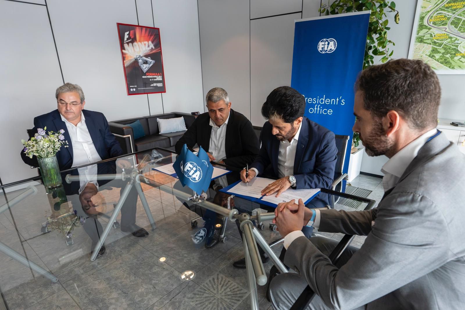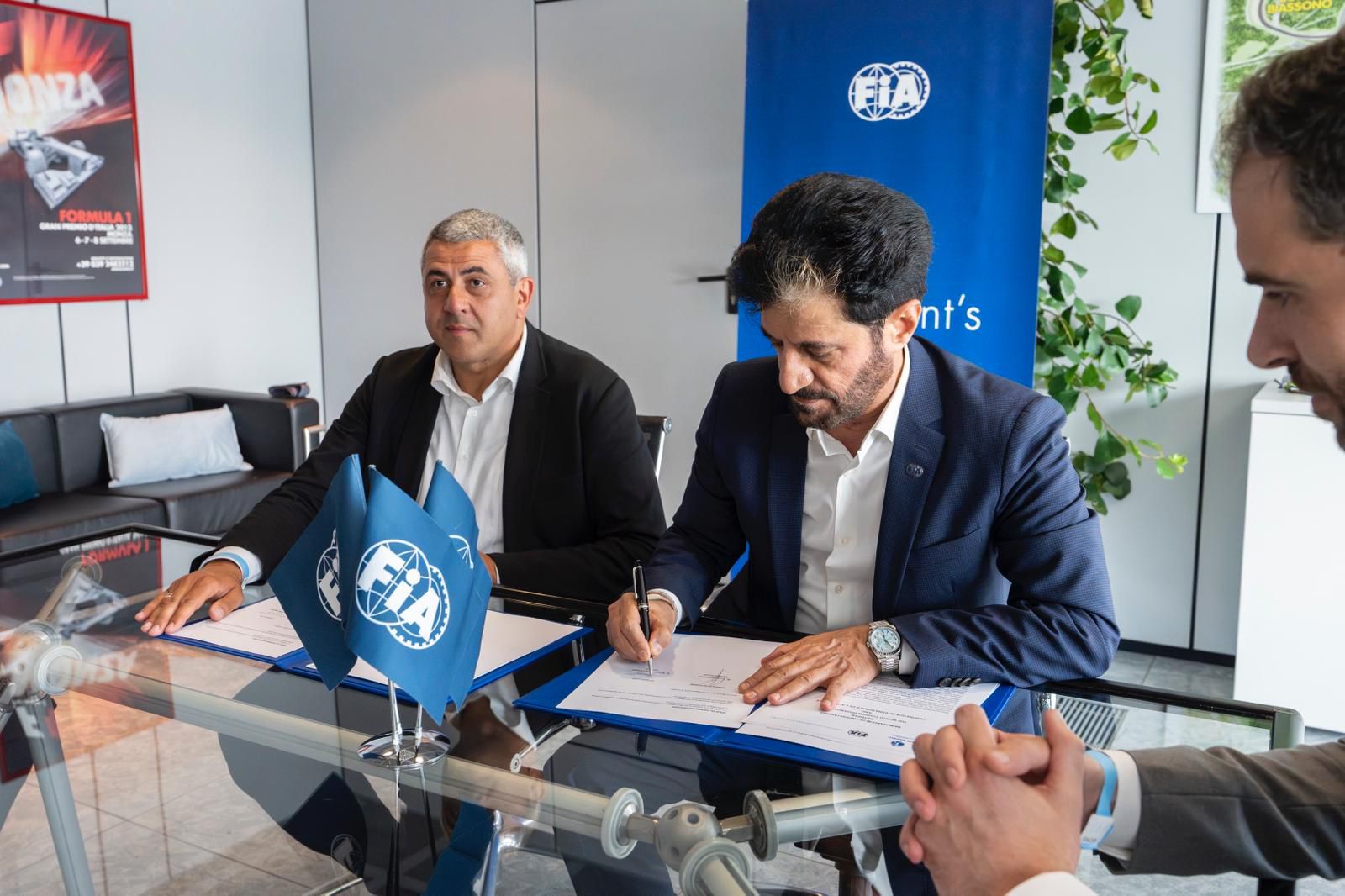 تم توقيع مذكرة التفاهم من قبل رئيس الاتحاد الدولي للسيارات محمد بن سليم والأمين العام لمنظمة السياحة العالمية زوراب بولوليكاشفيلي خلال الجائزة الكبرى للفورمولا 1 في مونزا، إيطاليا.