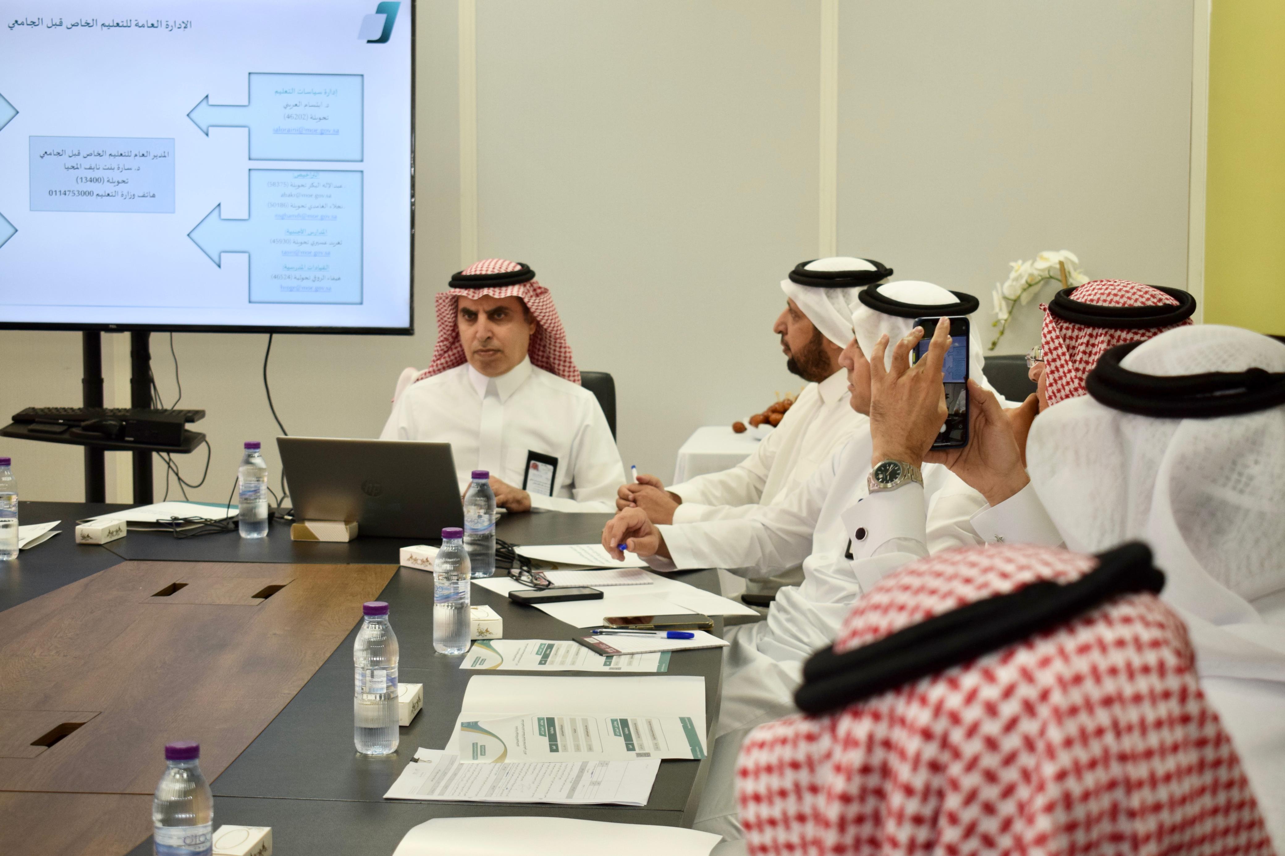 جدير ذكره تضمن اللقاء عرضاً لوكالة التعليم الخاص تم خلاله تسليط الضوء من قبل منيرة الزير مستشارة مدير وكالة التعليم الخاص على : جهود الوكالة تجاه مزيداً من التمكين للمستثمر ولمكاتب التعليم الخاص.