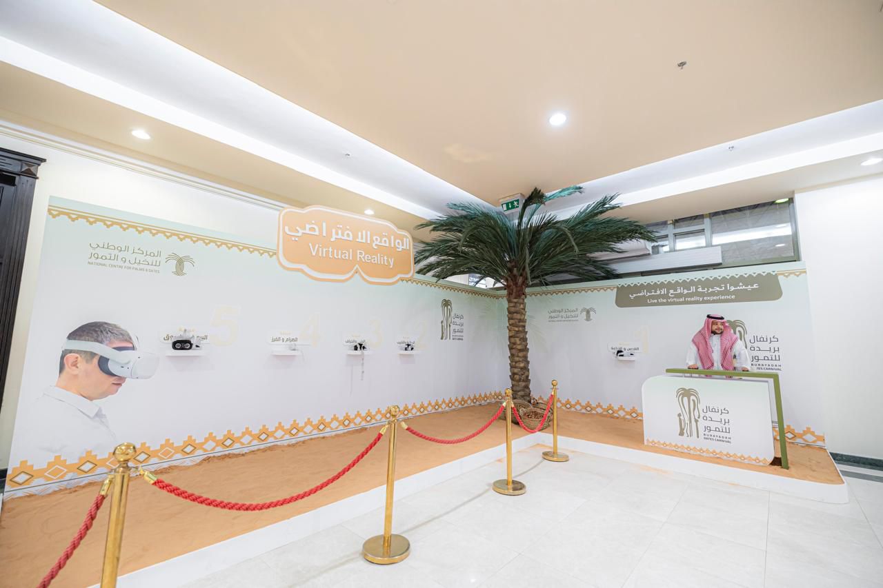ويتواجد ركن تجربة الواقع الافتراضي لمرحلة التمرة والنخلة عبر 5 محطات يعيشها الزائر في تقنية “VR” .