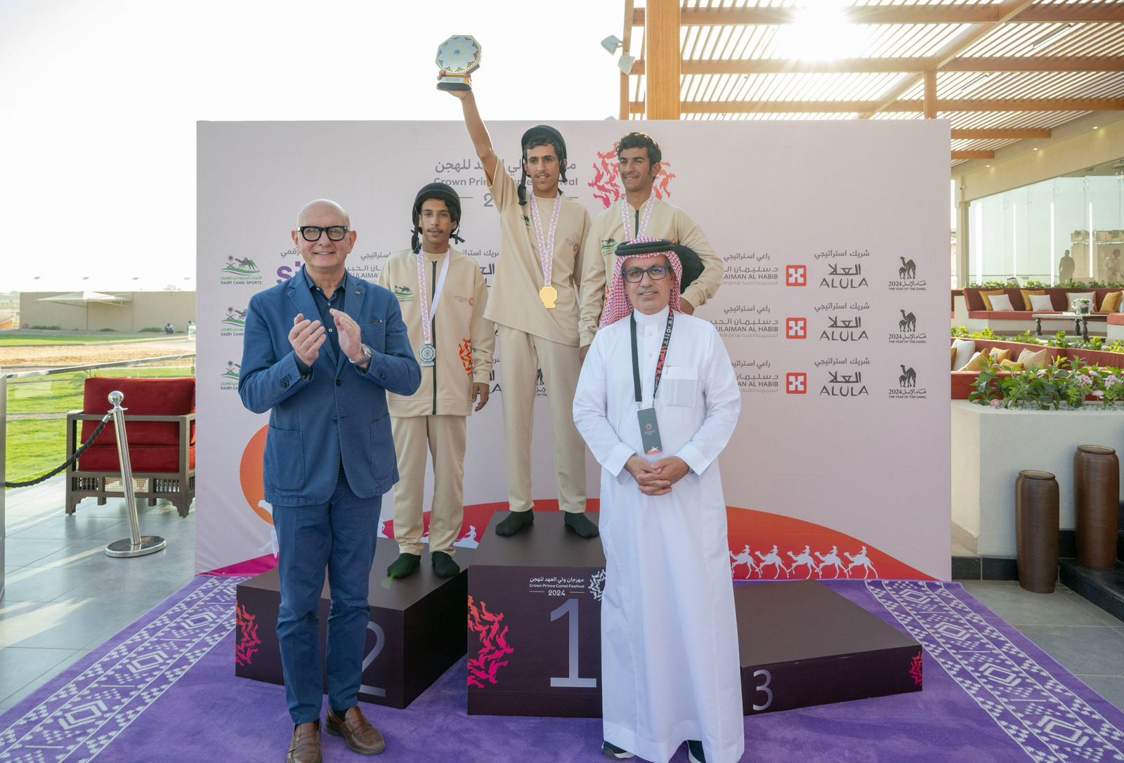توج محمد بن حماد البلوي نائب رئيس مجلس إدارة الاتحاد السعودي للهجن، برفقة ايفو فيرياني، رئيس منظمة "سبورت أكورد" اليوم، الهجانة أصحاب المراكز الأولى، في سباق الهجانة للراكب البشري للرجال والنساء، ضمن النسخة السادسة من مهرجان ولي العهد للهجن في مرحلته النهائية، الذي انطلق في العاشر من أغسطس الجاري، بتنظيم الاتحاد السعودي للهجن، وذلك على أرض ميدان الطائف لسباقات الهجن.