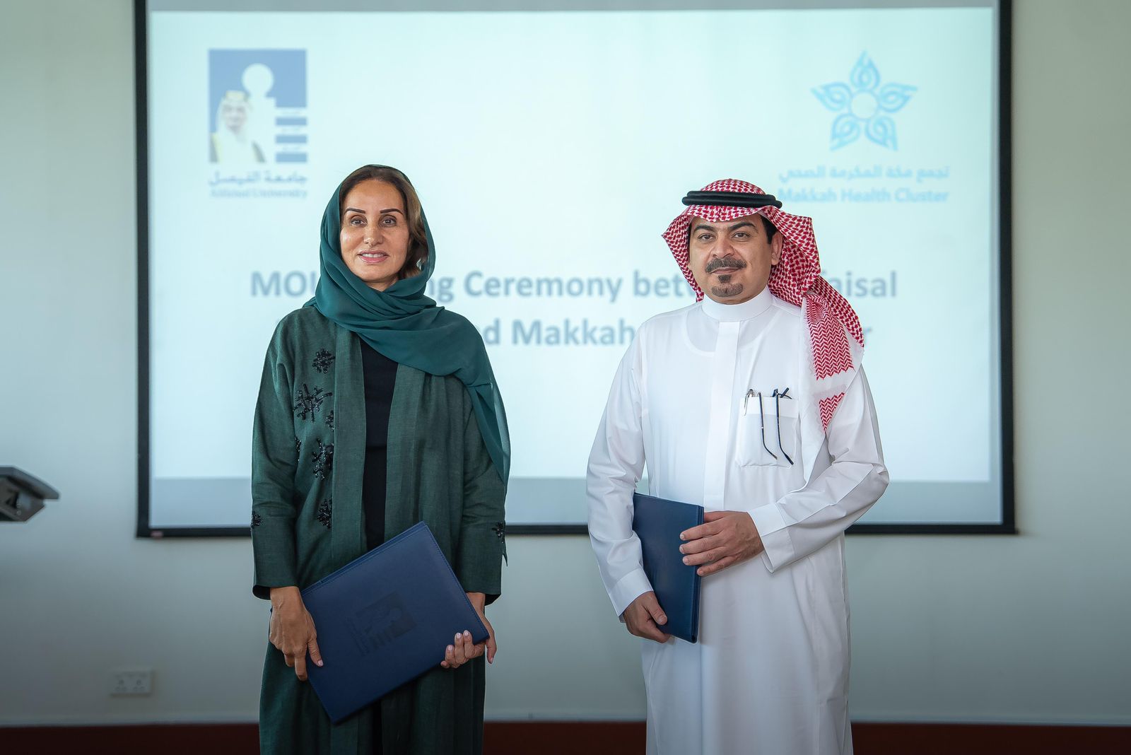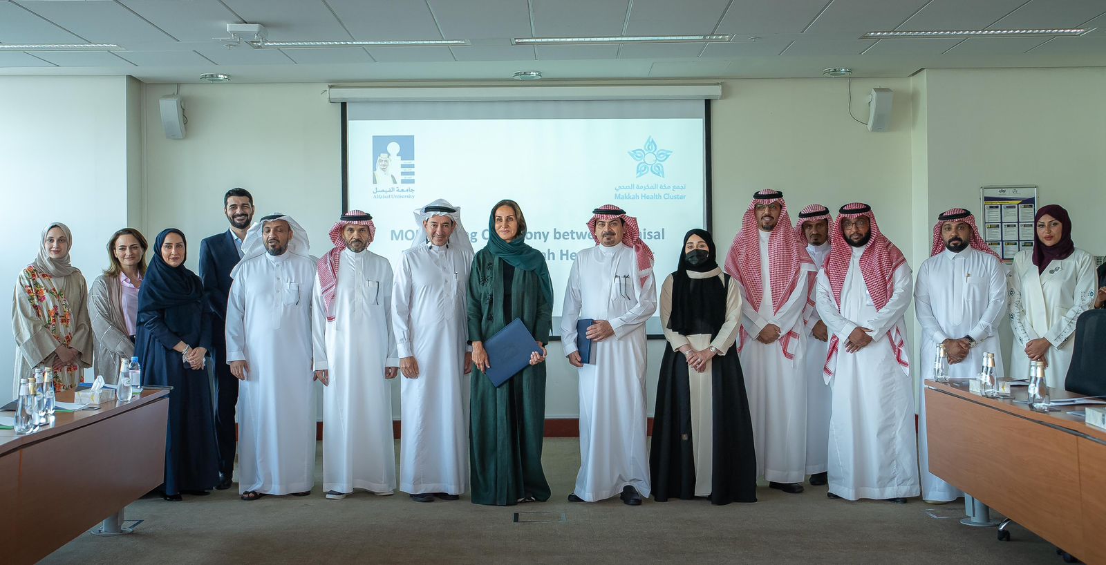 تم التوقيع في مقر جامعة الفيصل بمدينة الرياض، مثل جامعة الفيصل صاحبة السمو الملكي الأميرة الدكتورة مها بنت مشاري آل سعود نائب رئيس الجامعة للعلاقات الخارجية والتطوير في حين مثل تجمع مكة المكرمة الصحي الرئيس التنفيذي الدكتور حاتم بن أحمد العمري، بحضور عدد من القيادات من كلا الطرفين.