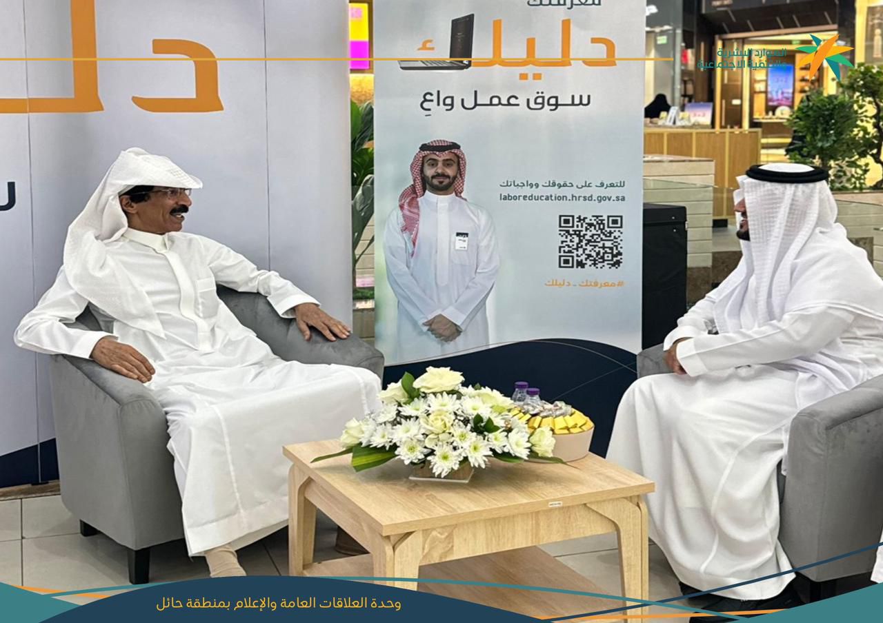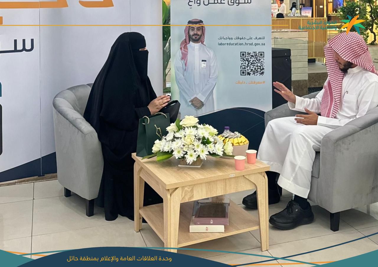 دشّن مدير عام فرع وزارة الموارد البشرية والتنمية الاجتماعية بمنطقة حائل فريح بن محمد العيّاد مبادرة سوق عمل واعي التي استمرت لمدة ثلاثة أيام في أكبر المجمعات التجارية بالمنطقة وذلك لهدف الوصول إلى أكبر شريحةٍ ممكنة من المجتمع من أجل التعريف بخدمات موقع الثقافة العمالية ورفع الوعي وتبصير الزوار بكافة الخدمات المقدمة.