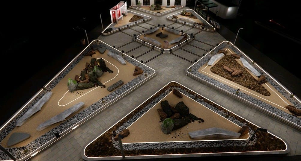 وتتميز الحديقة الحجرية بأنها نُفذت من مواد صديقة للبيئة، مما يتيح إضافة مرافق جديدة مثل مناطق الجلوس، وممرات تعليمية حول الأحجار، ومناطق لعب الأطفال. كما أن الصخور والأحجار المستخدمة هي مواد متينة وسهلة التنظيف والصيانة، مع تقليل الحاجة إلى الصيانة الدورية. إضافة إلى ذلك، تتميز باستخدام تصميمات بسيطة ومكونات متوفرة محليًا مثل الصخور والأحجار الناتجة من مخلفات الأعمال الجارية في محيط المواقع المقترحة، مما يسهل عملية التنفيذ ويقلل من التكاليف والجهد اللازمين. تعتمد الحديقة على توفير استهلاك المياه باستخدام الصخور والأحجار المتوفرة من مخلفات المشاريع، وتبني تصاميم مرنة يمكن تعديلها لتناسب مختلف المواقع في مكة المكرمة، بالإضافة إلى وضع خطط للصيانة الدورية بتقنيات عالية للحفاظ على الحديقة بأقل تكلفة ممكنة، واستخدام مبادئ التصميم المستدام السلبي الذي يمكن تطبيقه في أي بيئة مشابهة، مما يعزز إمكانية نقل التجربة إلى أماكن أخرى.