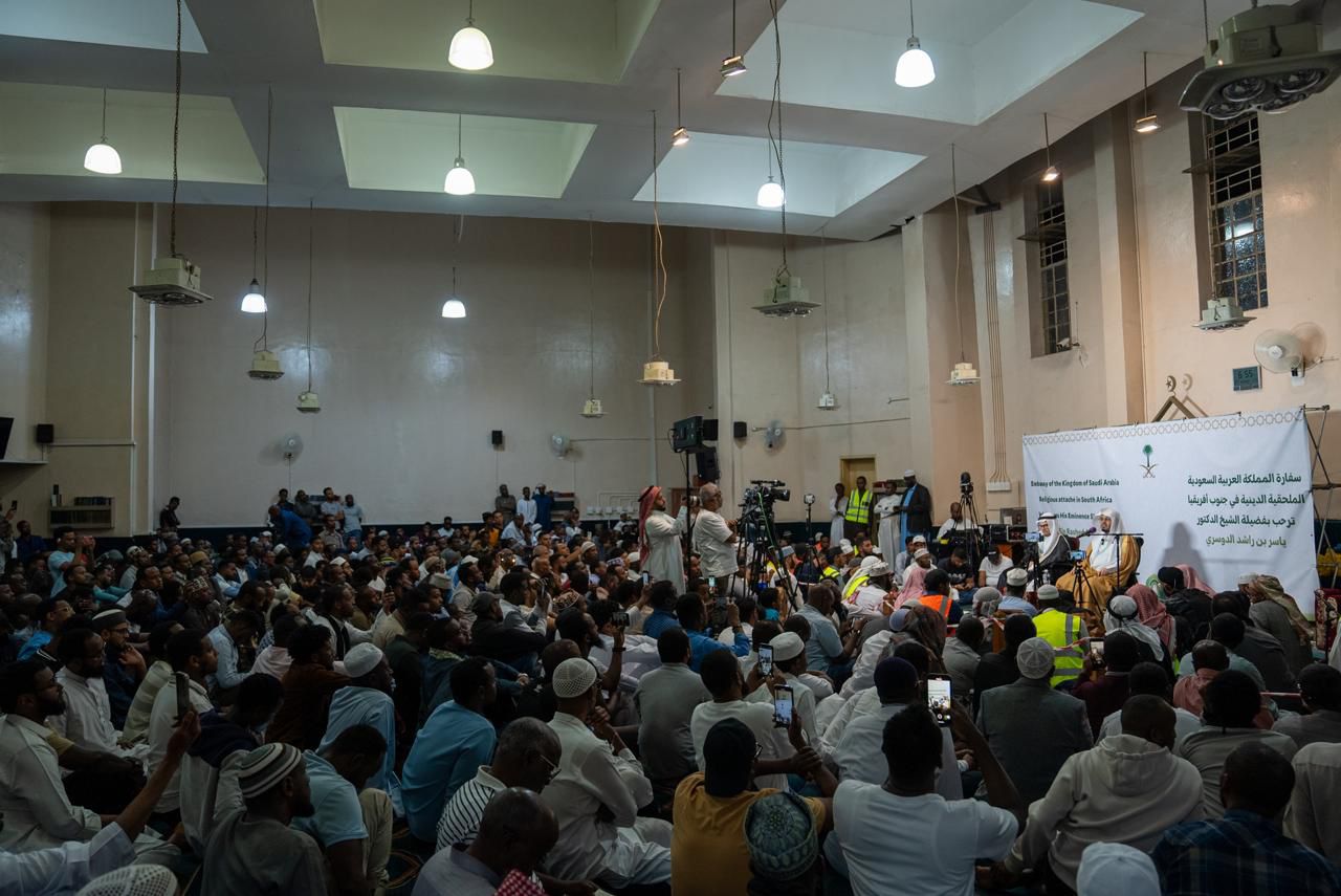 وقد ألقى "الدوسري" محاضرة توجيهية بعنوان: (هدايات قرآنية) في جامع الشافعي بمدينة جوهانسبرغ.. بحضور نائب رئيس مجلس البيان الإسلامي أحمد مود عبدي، والمسؤول الأمني في محافظة خاوتين سليم توكم، ونائب رئيس مركز دار السلام أحمد ديكورات، ورؤساء الجمعيات والمراكز الإسلامية، وعدد كبير من كافة شرائح المجتمع.