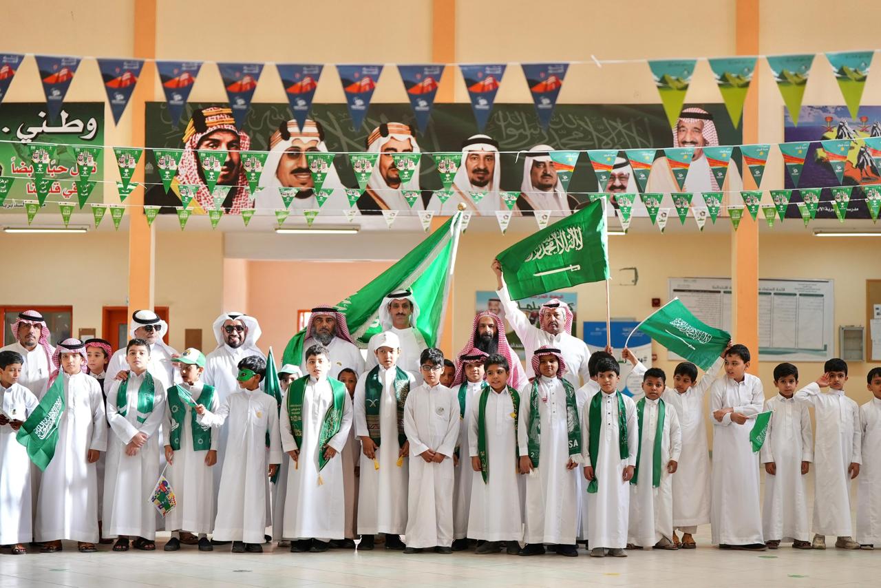 ونفذت المدارس فعاليات متنوعة احتفاءً باليوم الوطني تضمنت أنشطة شارك بها المعلمين والمعلمات من خلال تقديم المعلومات التاريخية والمنجزات الوطنية والإرث الحضاري للمملكة، بث رسائل وطنية إيجابية تعبيرية في الوفاء لوطنهم وللقيادة الحكيمة.